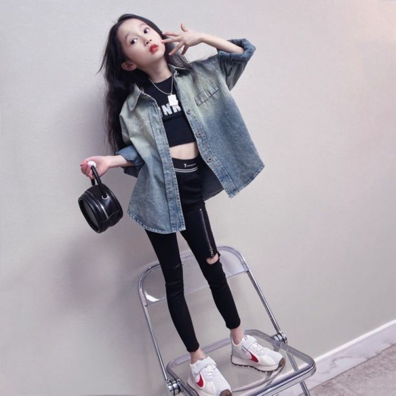 | nameOriginal | Girls' Denim Shirt 2024 Spring New Thin Jacket Large Children's Korean Loose Casual Top Mid-length |