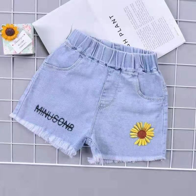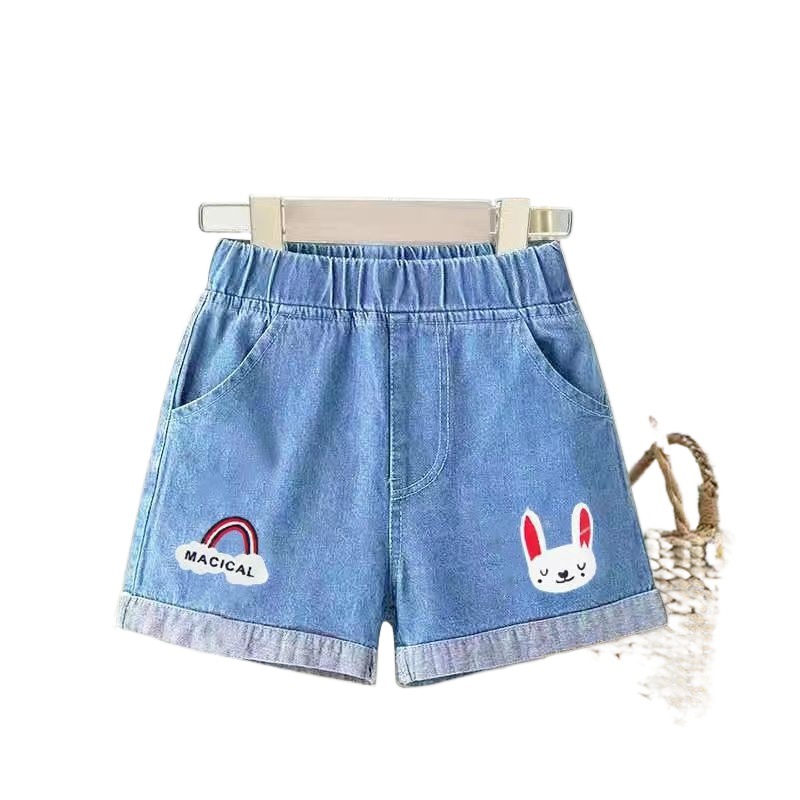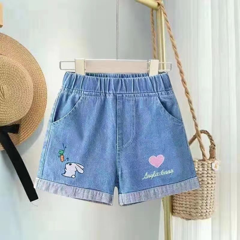 Girls' Denim Shorts 2024 Summer Children's High Waist Korean Loose Mid-Big Children's All-Match Western Style Baby Short Pants