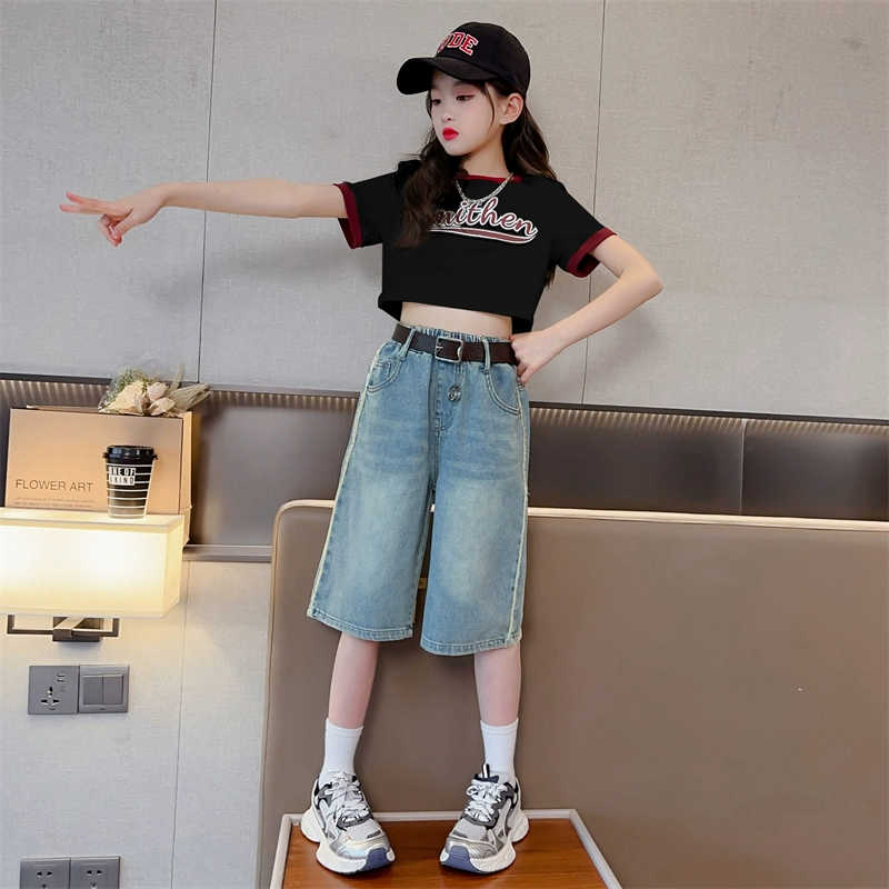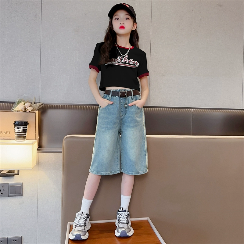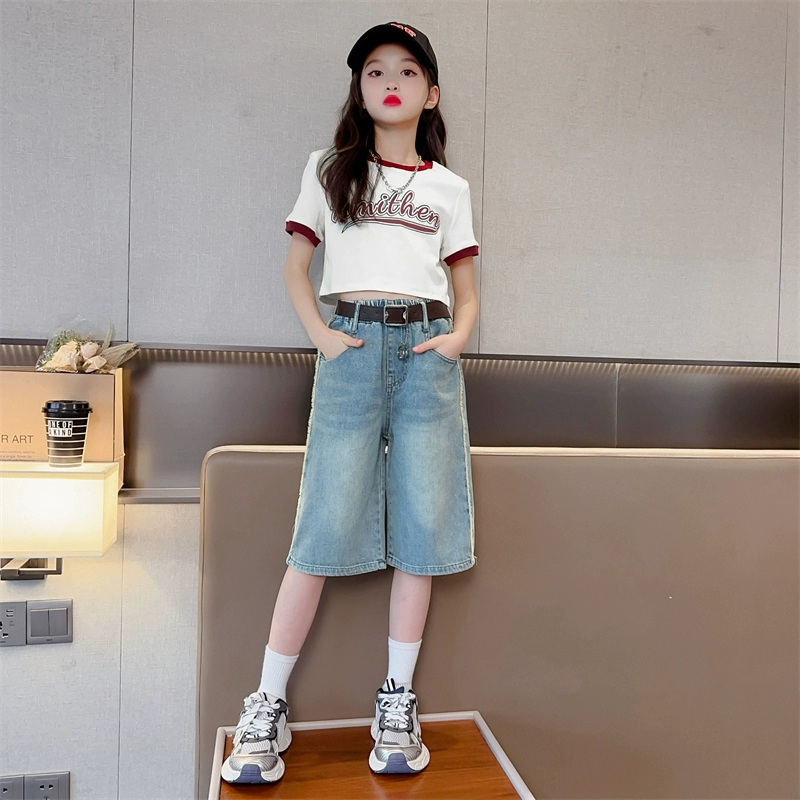 | nameOriginal | Girls' denim shorts for summer outer wear 2024 new children's mid-pants thin summer clothes for girls and older children's summer cropped pants |