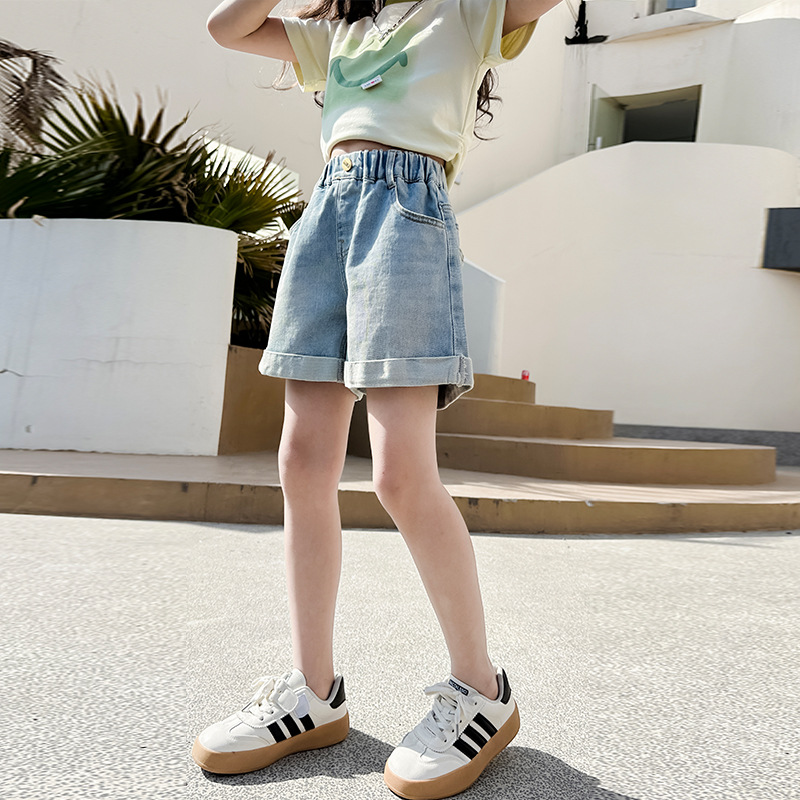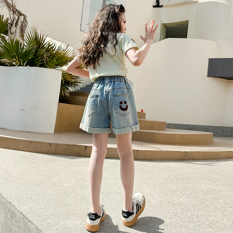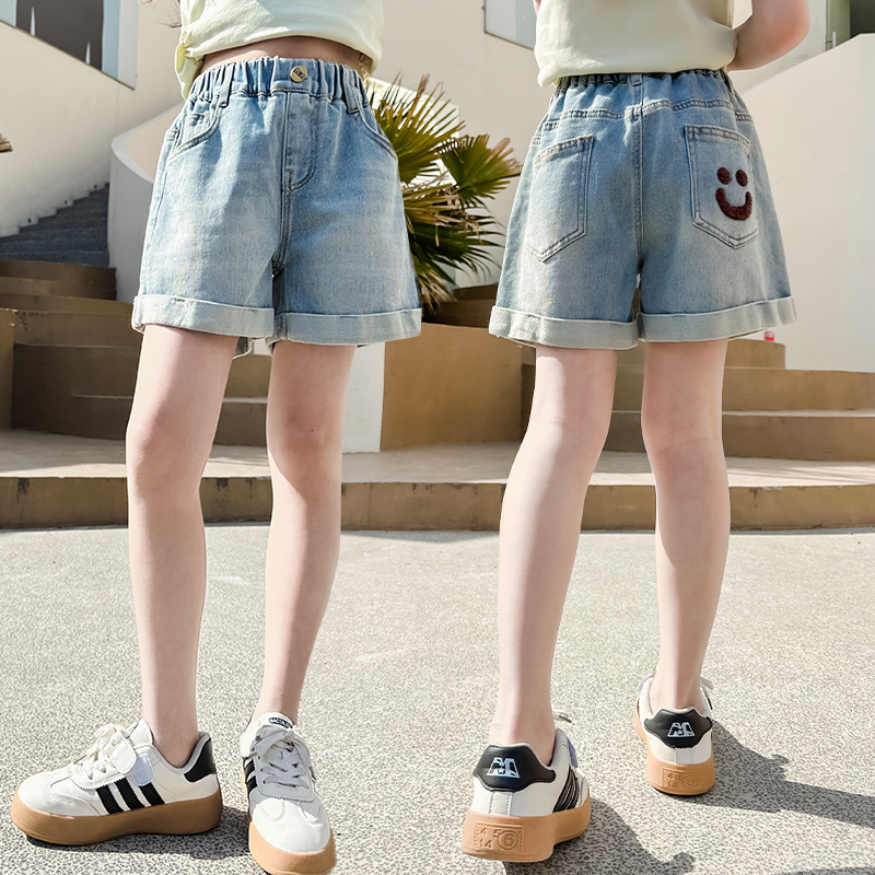| nameOriginal | Girls' Denim Shorts Summer Thin 2024 New Arrival Summer Dress Big Boy Girls' Western Style Casual Smiley Face Children's Pants |