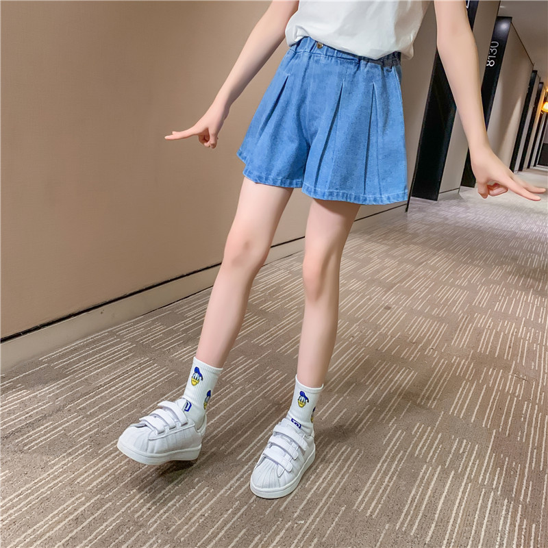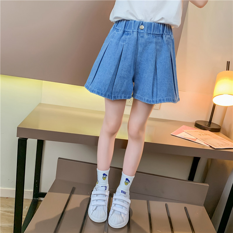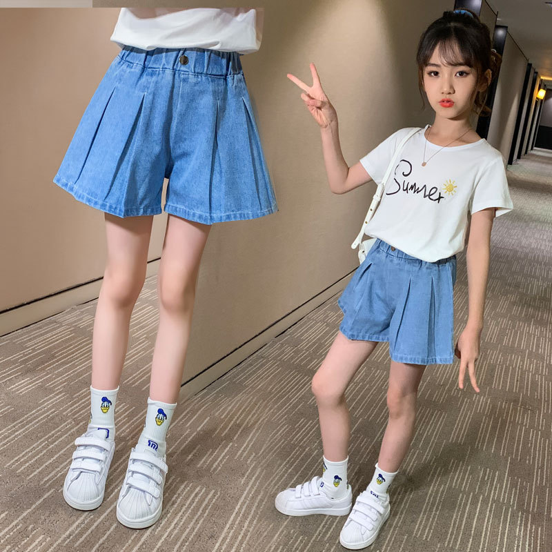 | nameOriginal | Girls' Denim shorts summer thin Western style children's wide leg Denim shorts summer pants skirt for middle and big children outer wear |