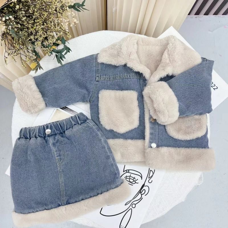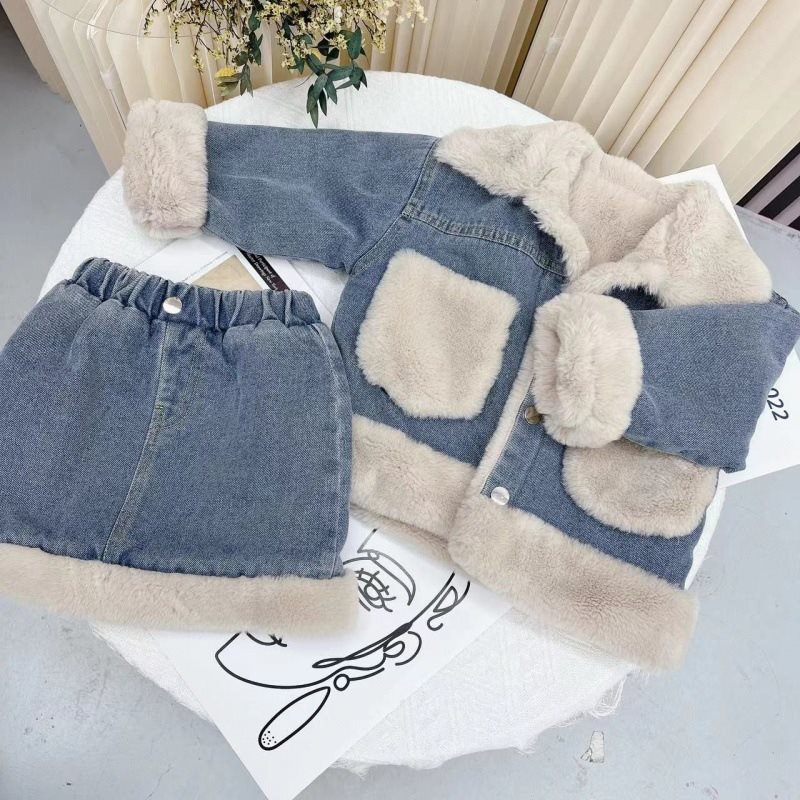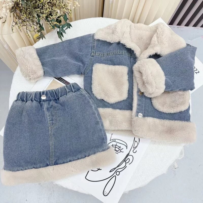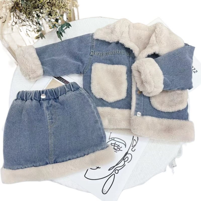 | nameOriginal | Girls' Denim suit 2023 Winter New Children's Western Style Denim Coat Baby Girl's Cotton Padded Thickened Short Skirt Trendy |