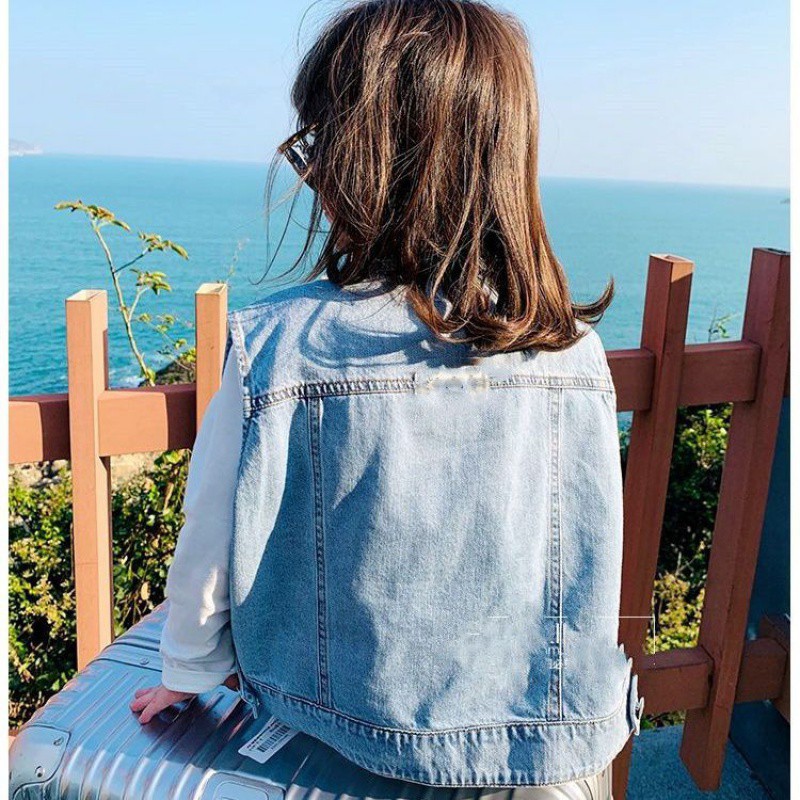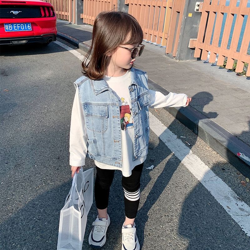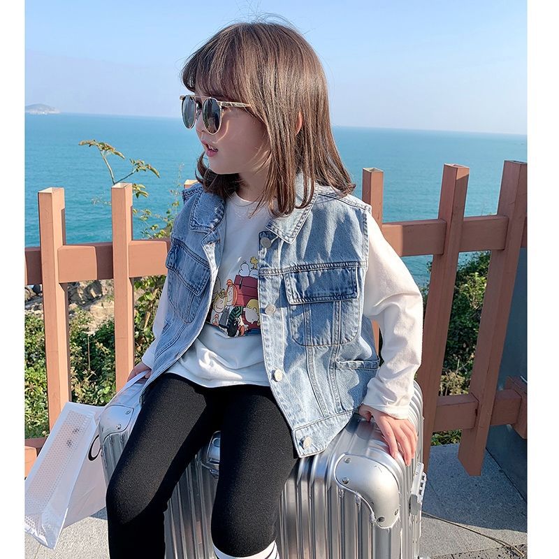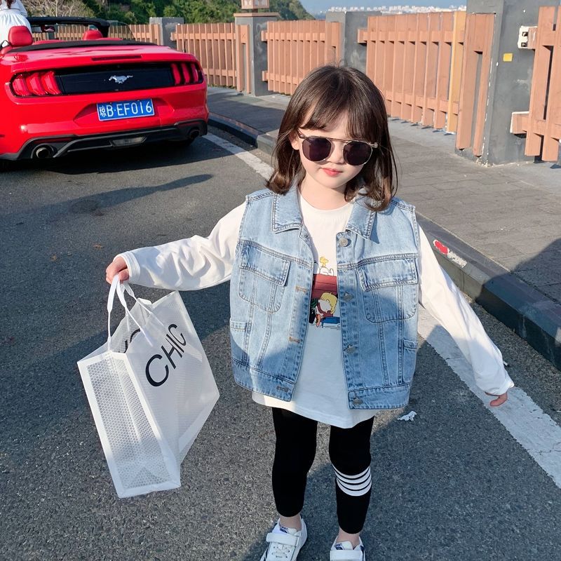 Girls' Denim Vest 2023 Spring New Children's Western Style Outer Wear Vest Vest for Baby Spring and Autumn Coat Trendy