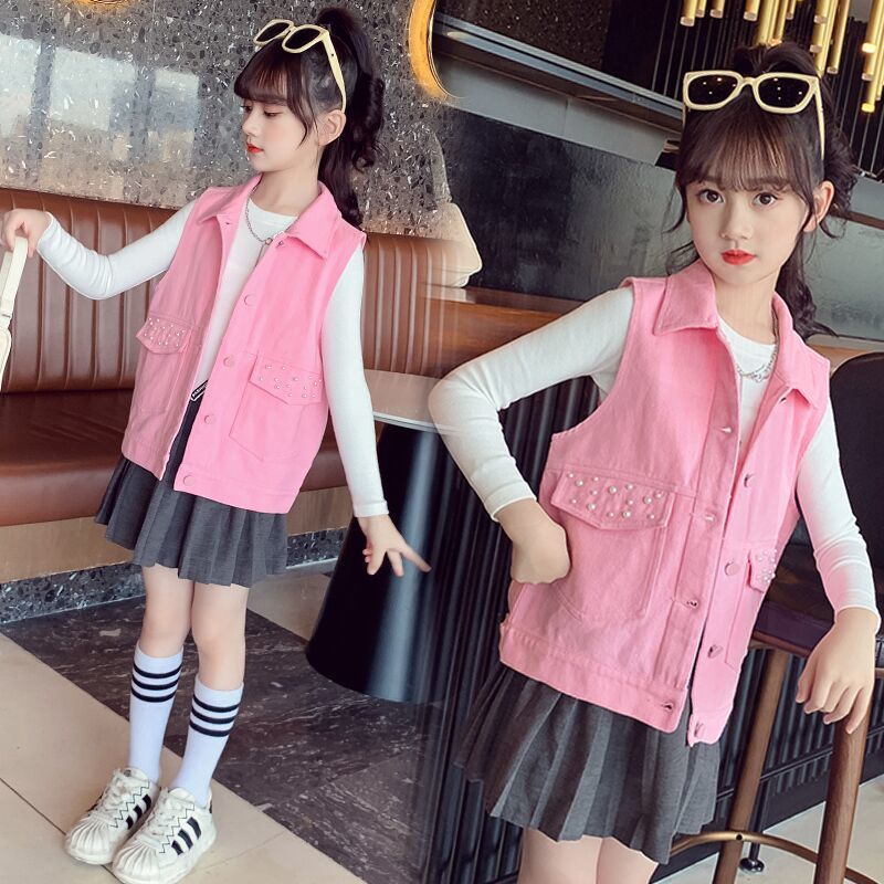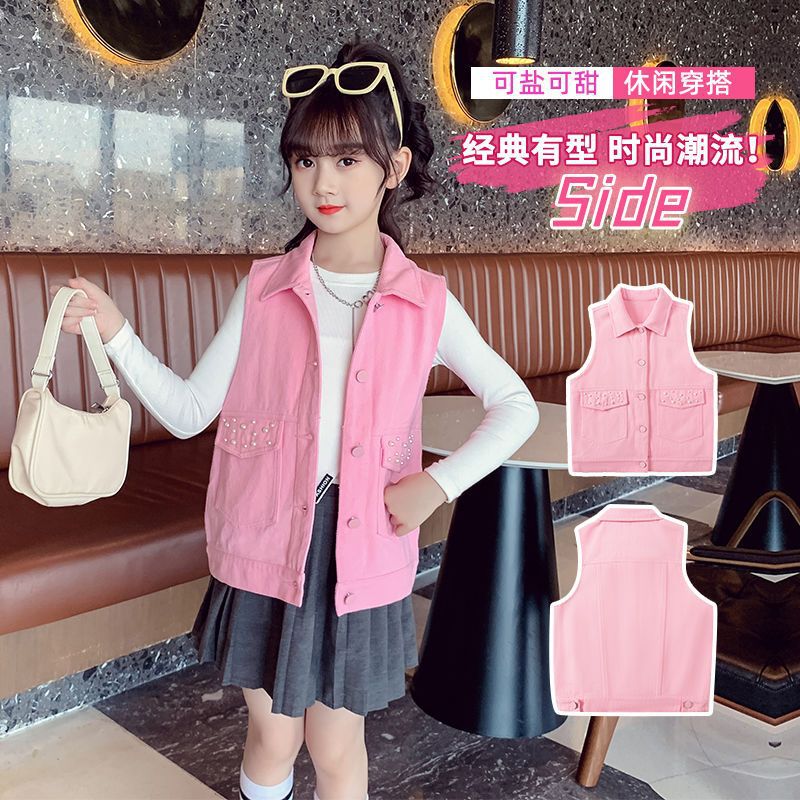 | nameOriginal | Girls' Denim Vest 2024 Spring New Children's Western Style Outer Wear Vest Vest for Baby Spring and Autumn Coat Trendy |