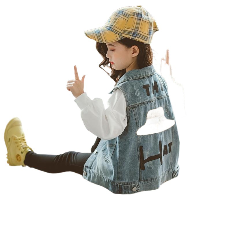 | nameOriginal | Girls' Denim Vest Outer Wear Spring and Autumn Western Style Fashion Chanel Style Children's Waistcoat Vest Large Children's Coat Spring Wear |