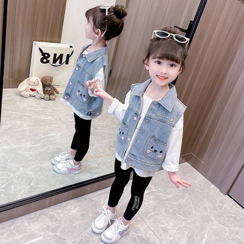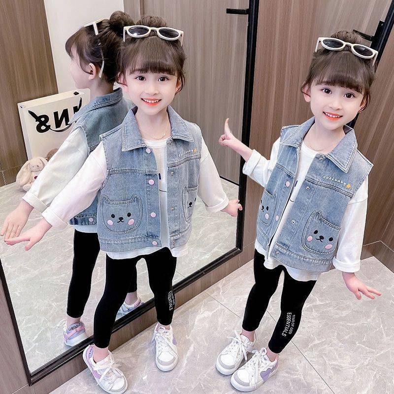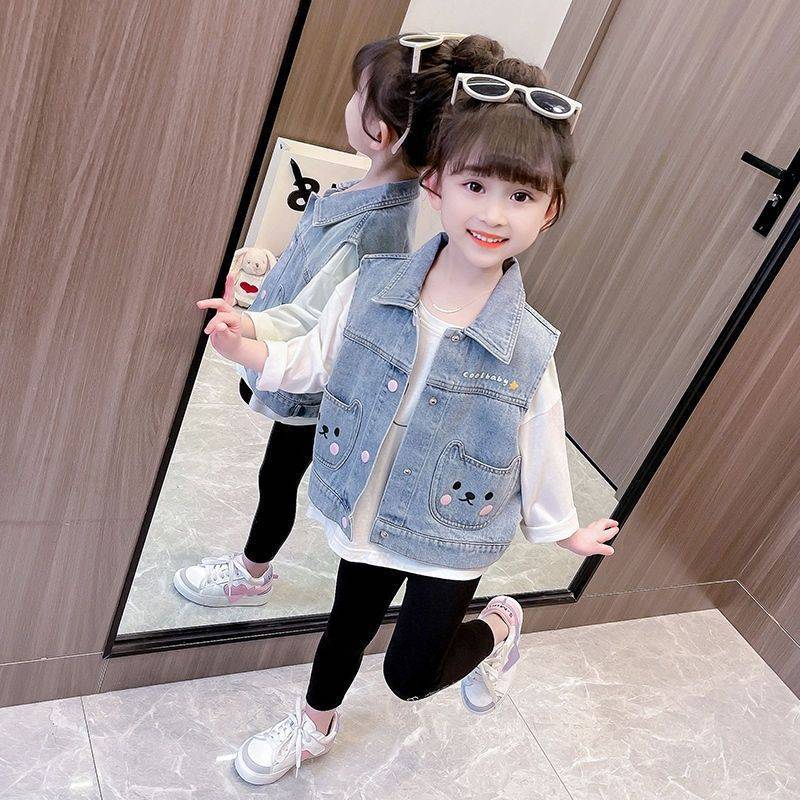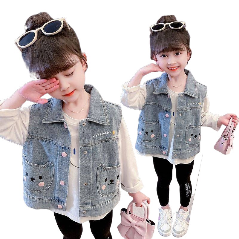 | nameOriginal | Girls' Denim Vest Spring and Autumn 2024 New Children's Outfit Western Style Baby's Spring Waistcoat Spring Vest |