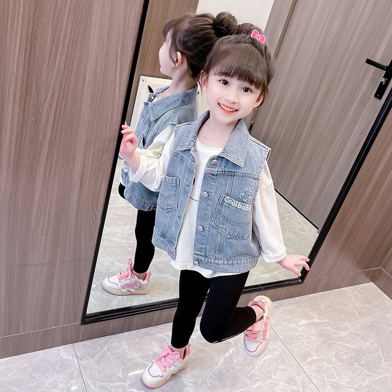 | nameOriginal | Girls' Denim Vest Spring and Autumn 2024 New Western Style Internet Celebratory Vest Outer Wear Spring Wear Children's Fashionable Spring Coat |