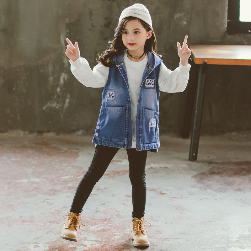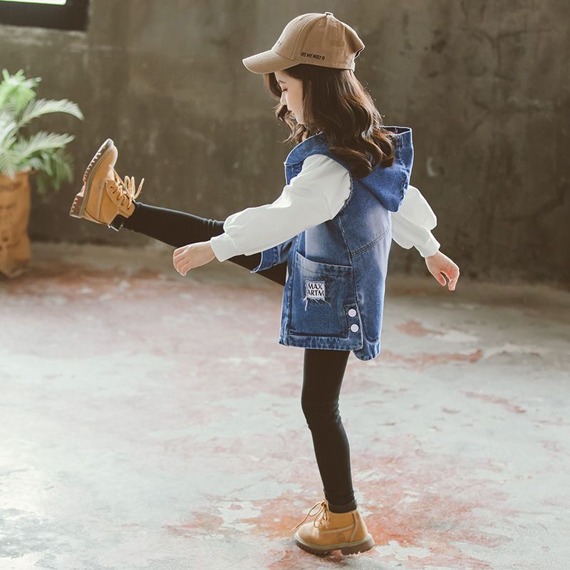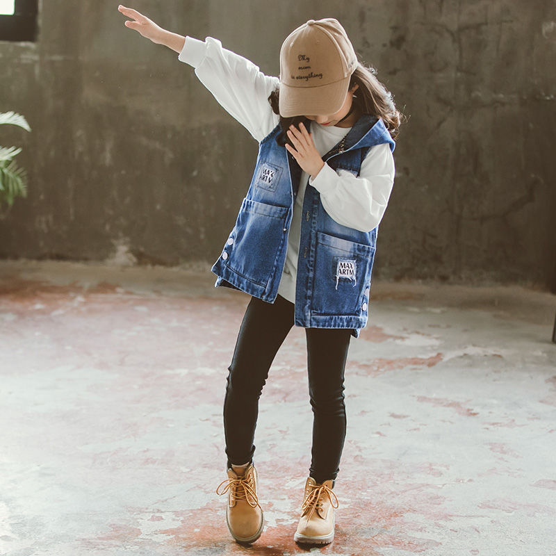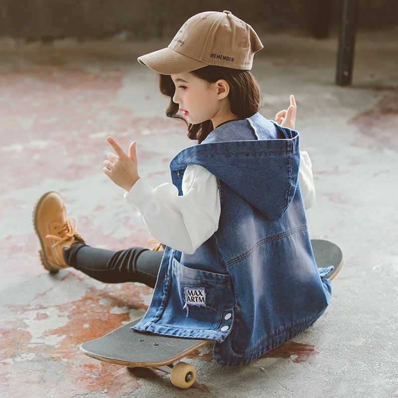 | nameOriginal | Girls' Denim waistcoat for spring and autumn 2024 new cuhk children's vest foreign-style hooded coat cardigan top |