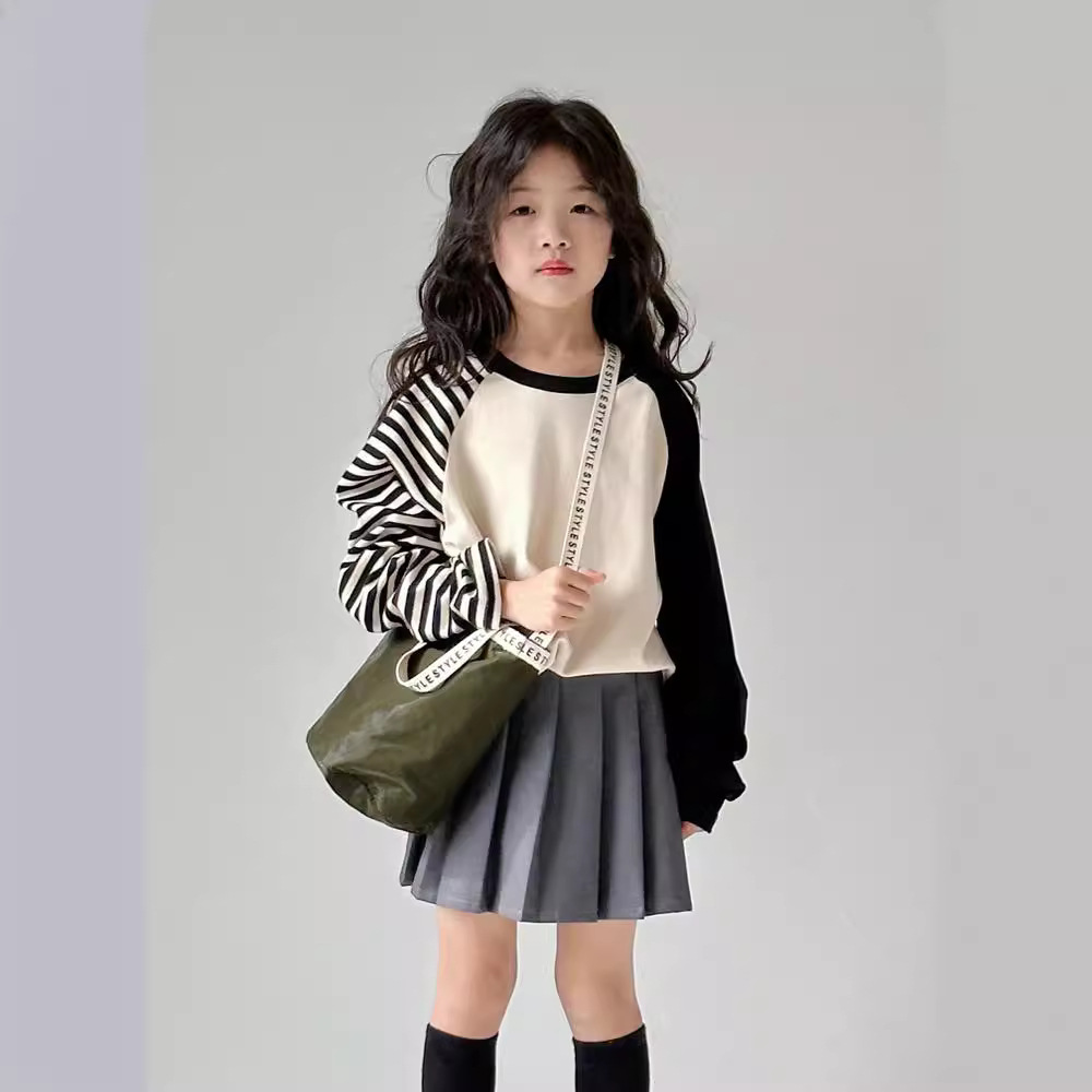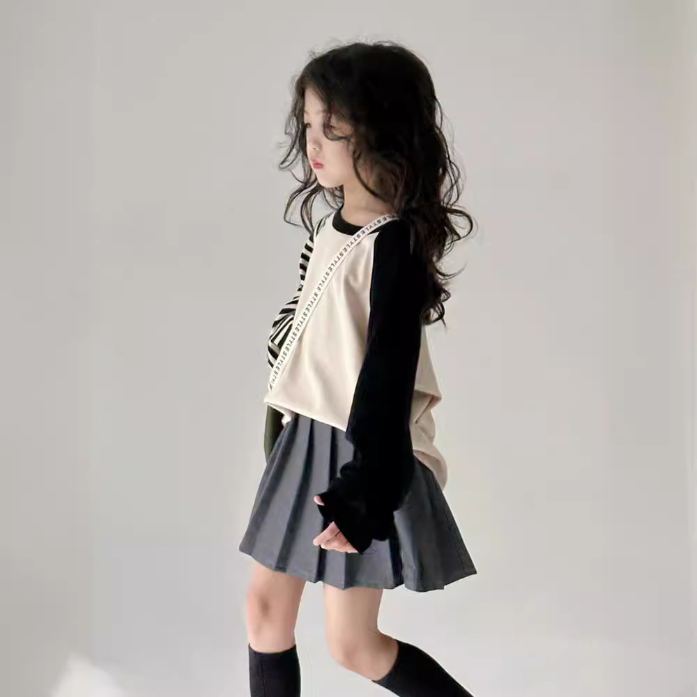 | nameOriginal | Girls Design Asymmetric T-shirt Pleated Skirt suit Spring 2024 New Children's Female Baby Korean Sweatshirt |