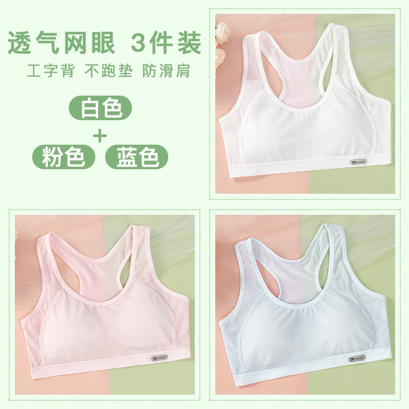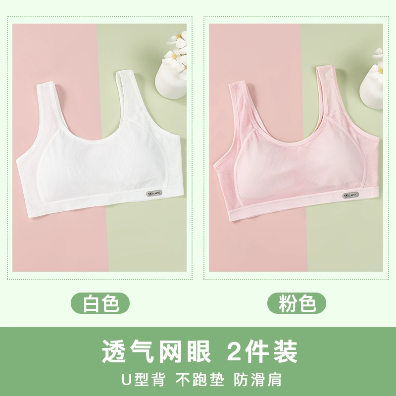 | nameOriginal | Girls' developmental period student underwear, female junior high school students' summer thin second-stage girls' small vests and children's fixed cups |