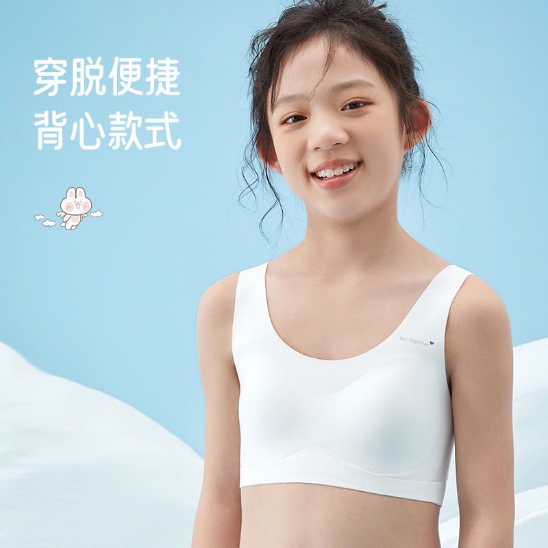 | nameOriginal | Girls' Developmental Stage One Two Three Wide Thin Shoulder Strap Underwear No Steel Ring Semi-Fixed Cup Seamless Fit Bra |