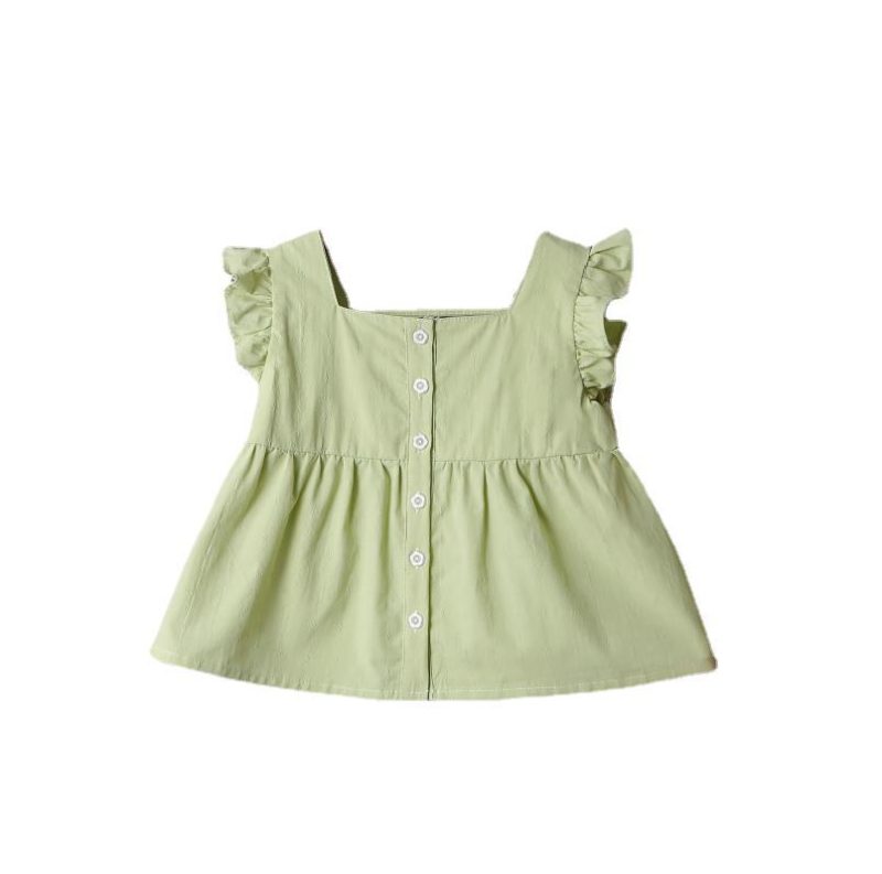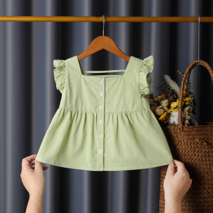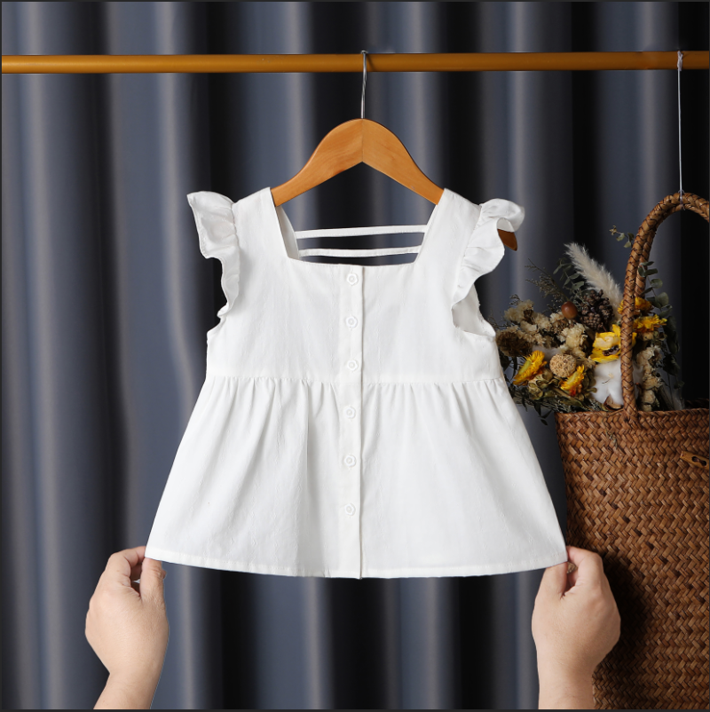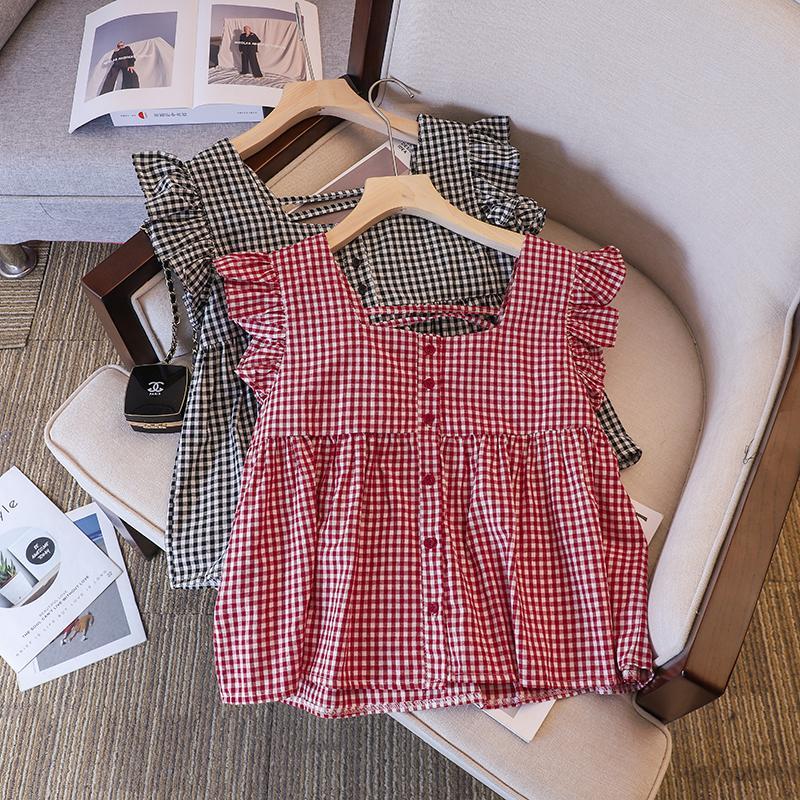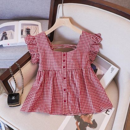 Girls’ Doll Shirt 2024 New Summer Small and Medium-sized Children’s Top Fashionable Stylish Plaid Sweet Small Flying Sleeve Thin Shirt