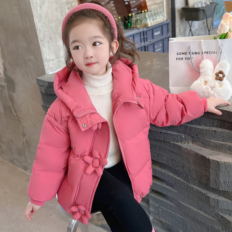 Girls’ down jacket 2023 new western style baby winter clothes little girl flower short thickened white duck down coat winter