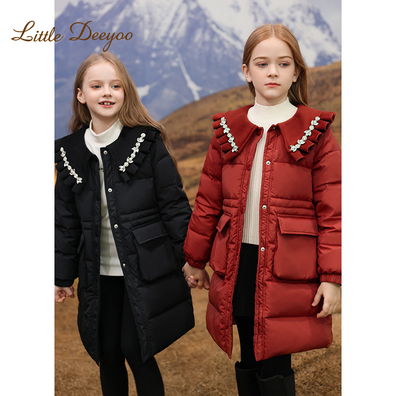 | nameOriginal | Girls' Down Jacket Big Children's 2024 New Winter Clothes Western Style New Year's Happy Children's Winter Mid-length Thickened Warm Jacket |