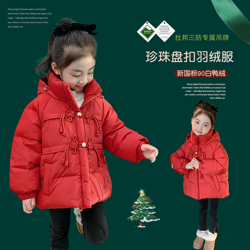 | nameOriginal | Girls' down jacket winter 2023 new children's winter clothes 90 white duck down thickened red New Year greeting clothes New Year coat |
