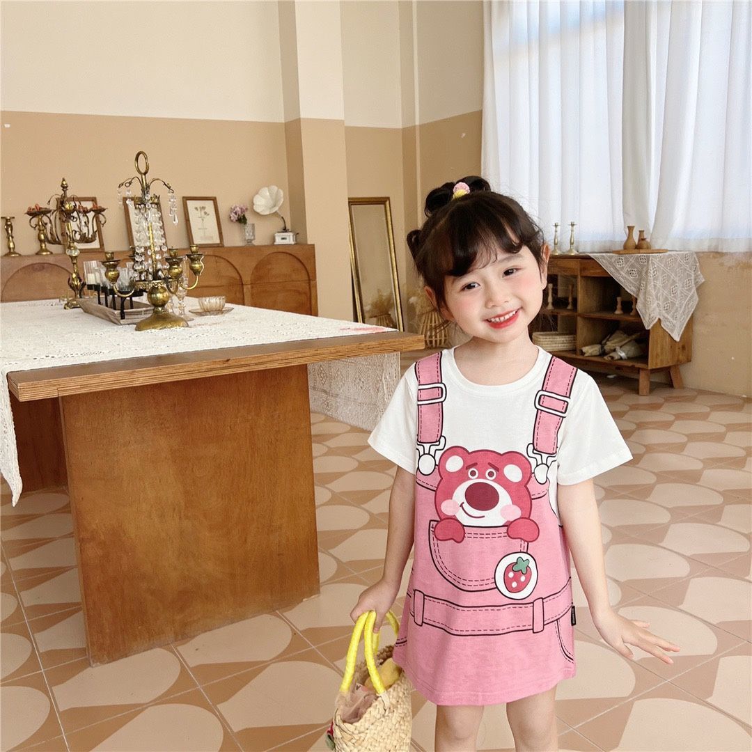 | nameOriginal | Girls dress 2023 Summer new cute girl Western style cartoon printed loose short sleeve T-shirt skirt fashion |