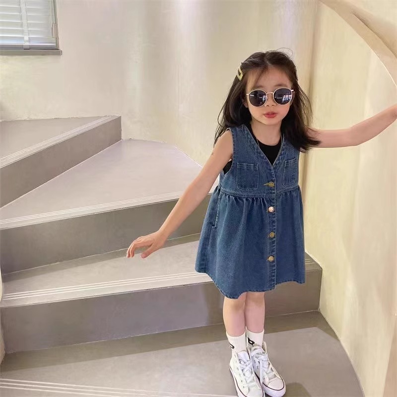 | nameOriginal | Girls dress 2024 Spring and Summer New Style Girl Princess Dress Pleated Skirt Baby Sleeveless Vest Denim Skirt |