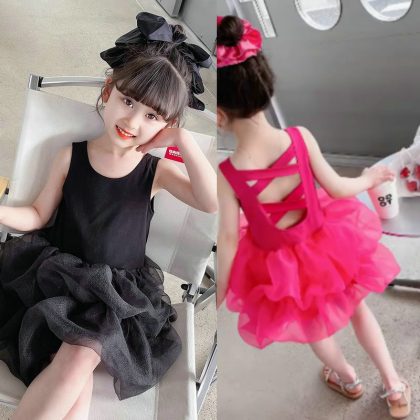 | nameOriginal | Girl's dress backless cross strap mesh pettiskirt dress 2024 Summer new foreign trade children's clothing delivery |