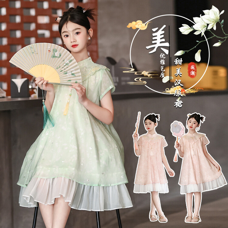 | nameOriginal | Girls' dress Summer 2024 New Children's New Chinese Embroidered Cloud Shoulder Stylish Girl's Stylish Princess Dress |