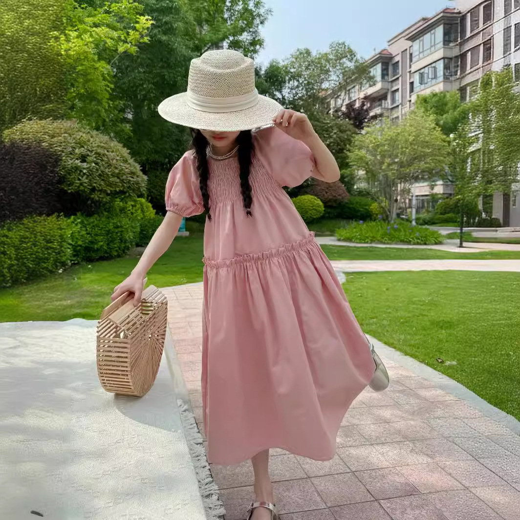Girls dress Summer 2024 New Korean-style Summer Girl Solid Color Children’s Summer Princess Dress