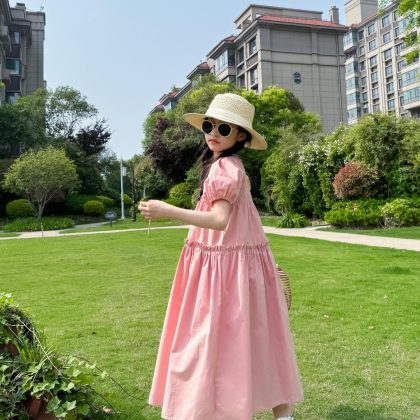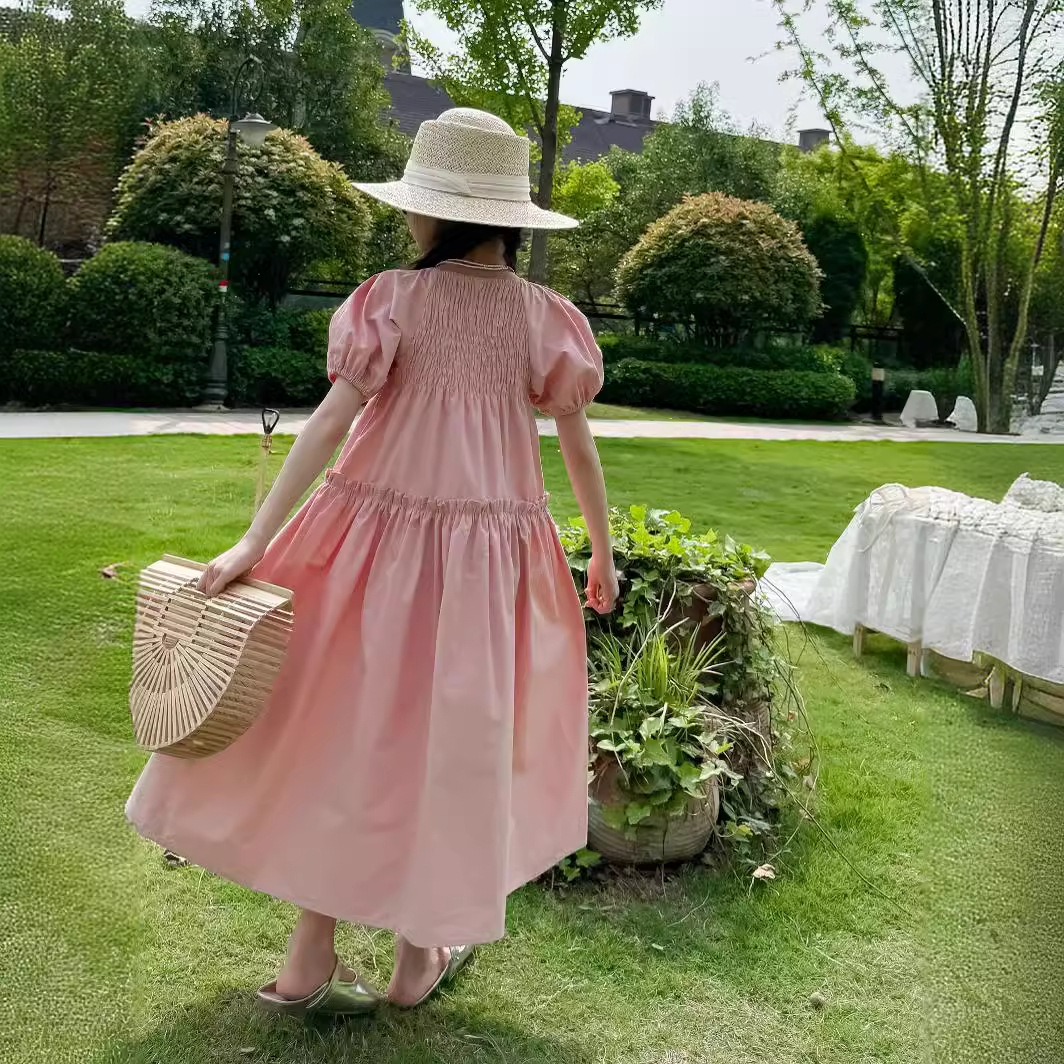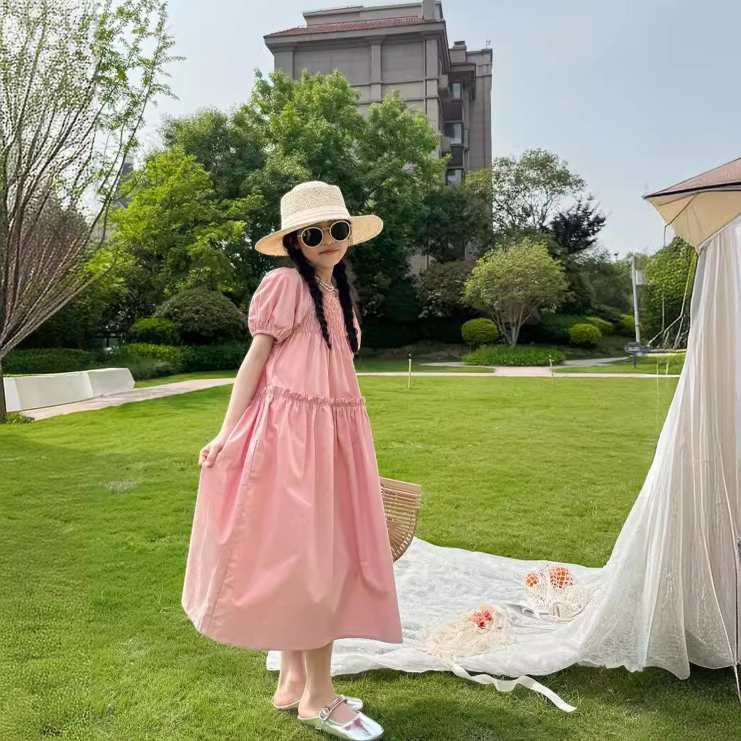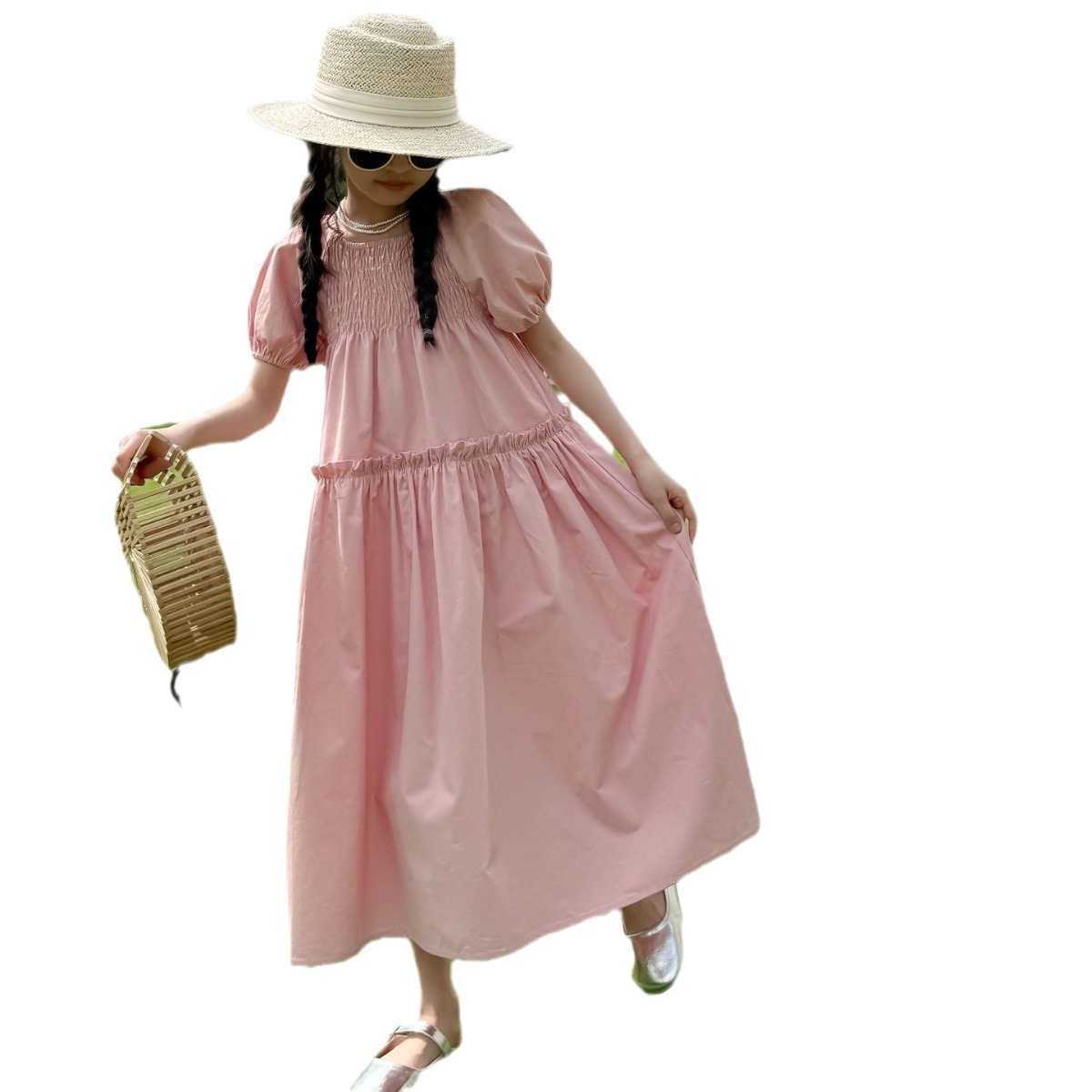 Girls dress Summer 2024 New Korean-style Summer Girl Solid Color Children’s Summer Princess Dress