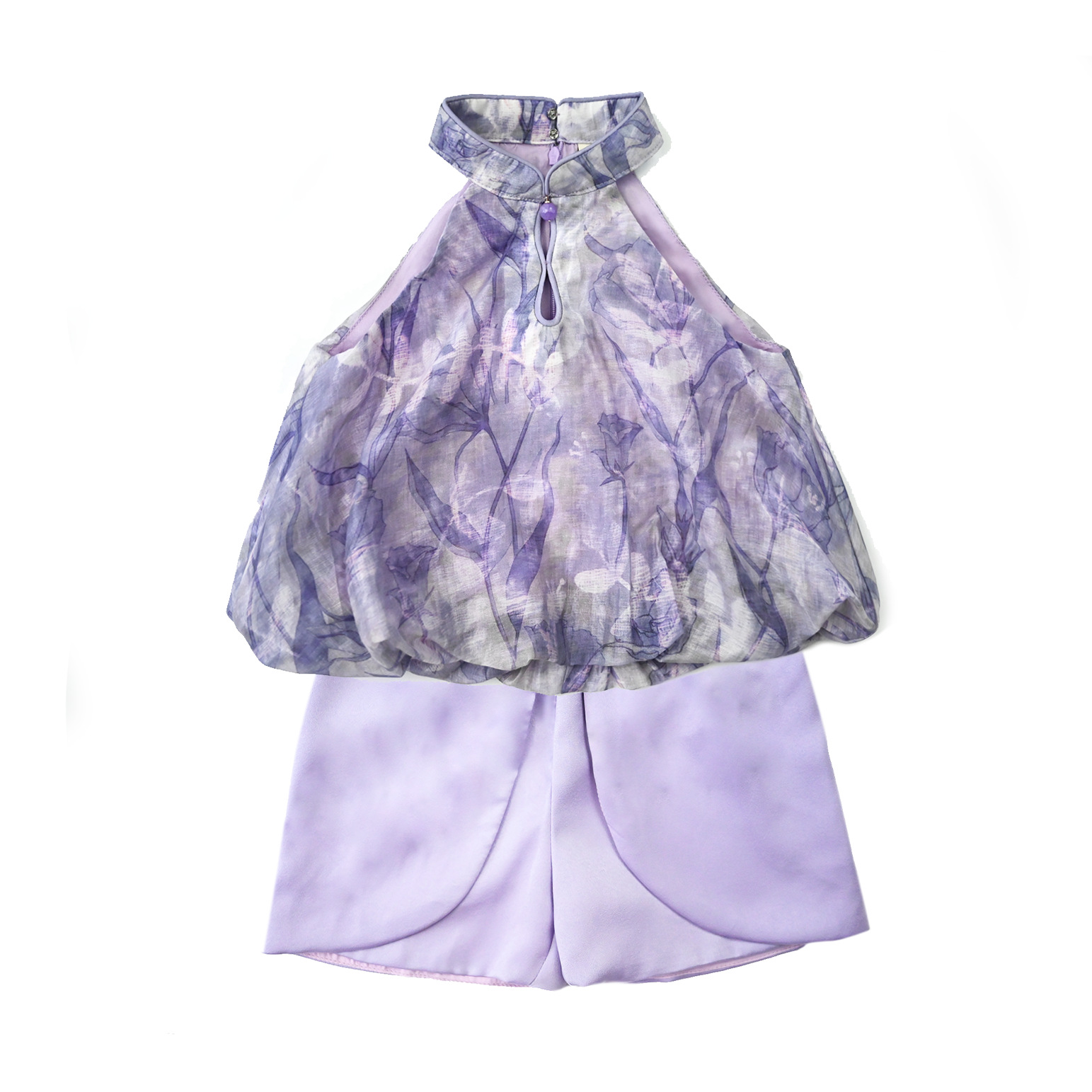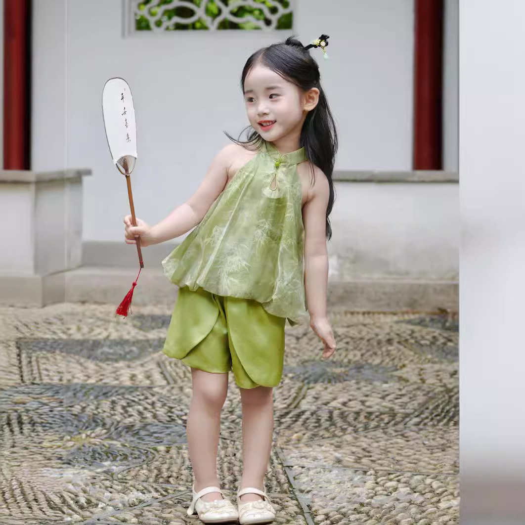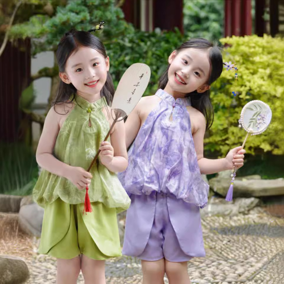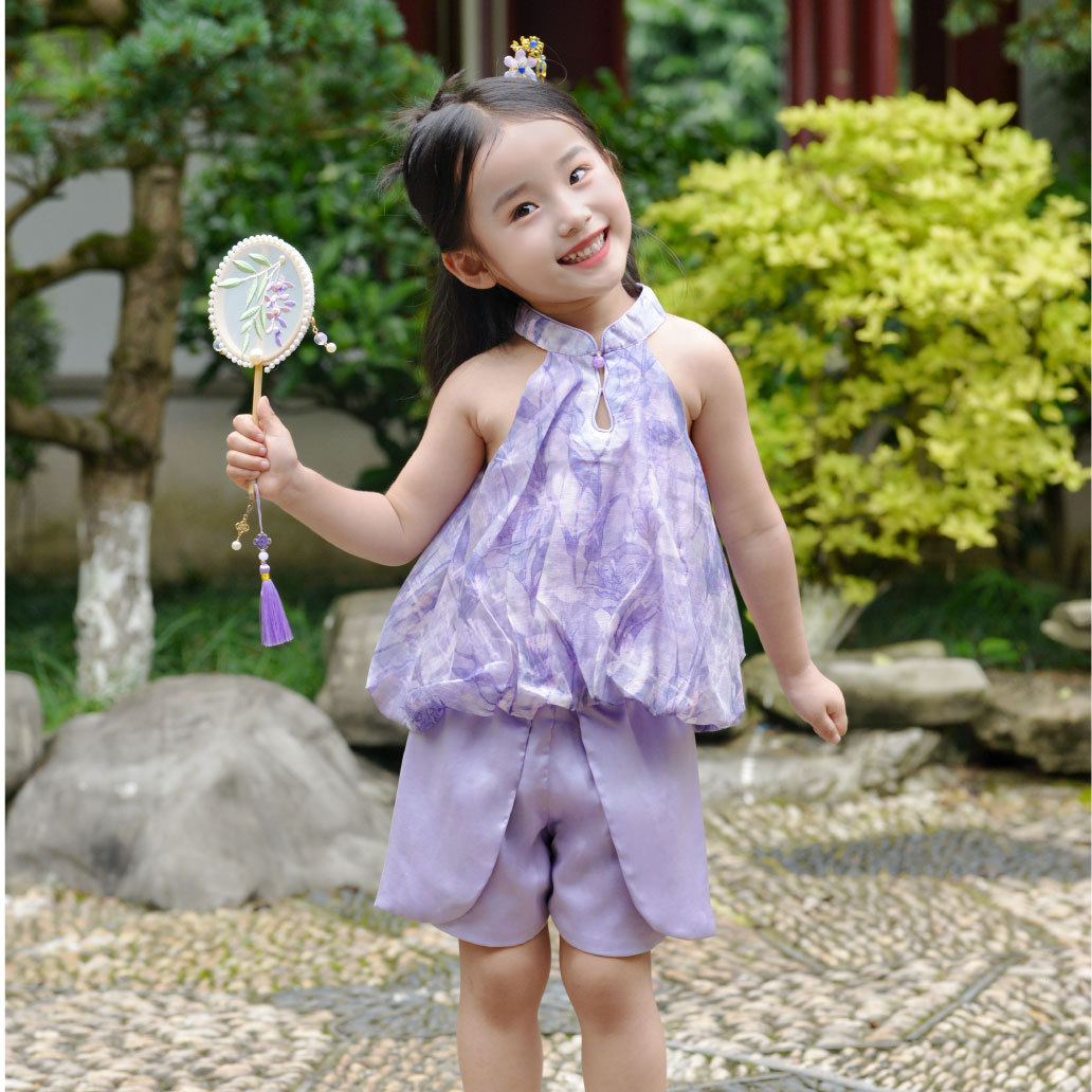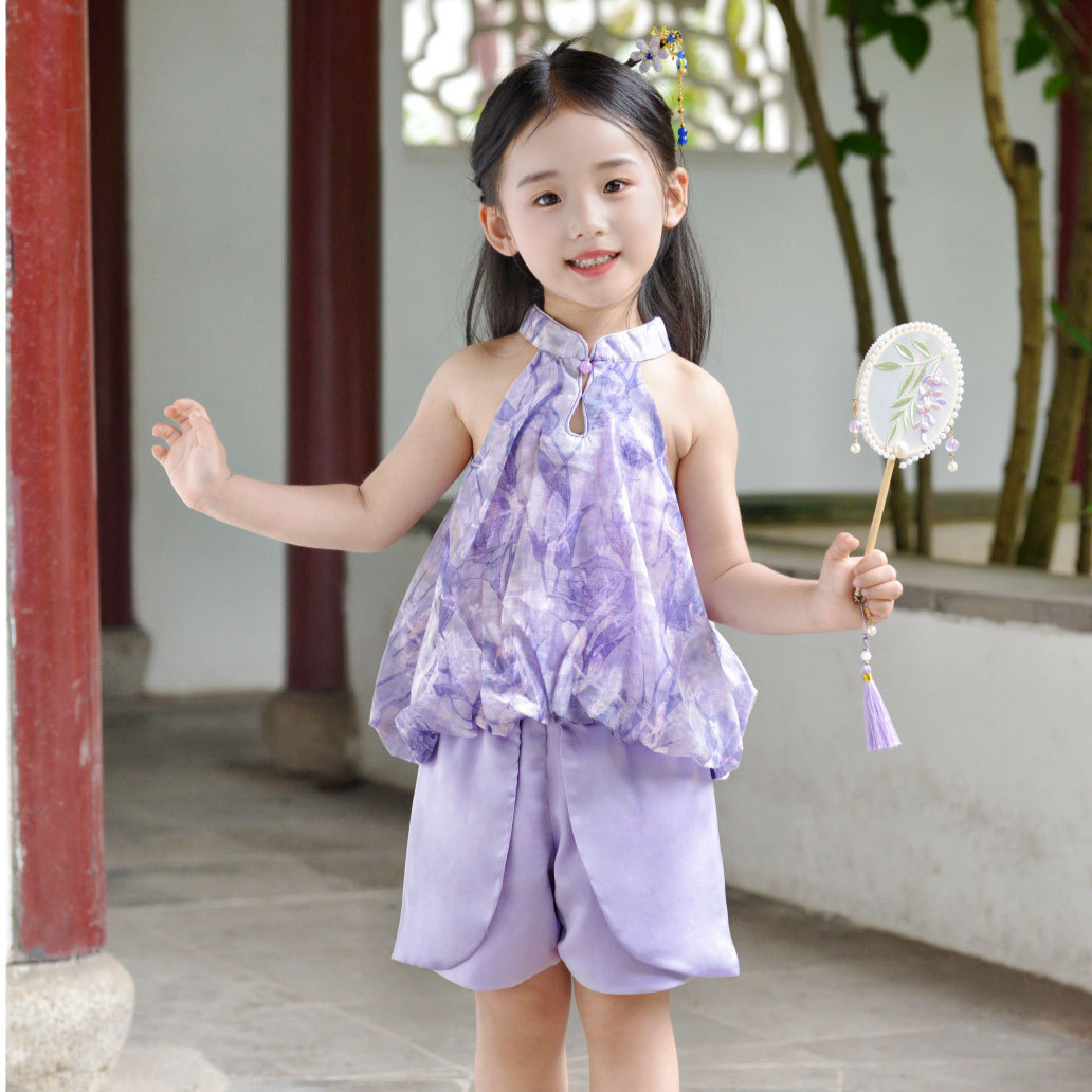 | nameOriginal | Girls' dress Summer 2024 New Stylish Baby One-Year-Old Dress Children's Green Purple Neck Top |