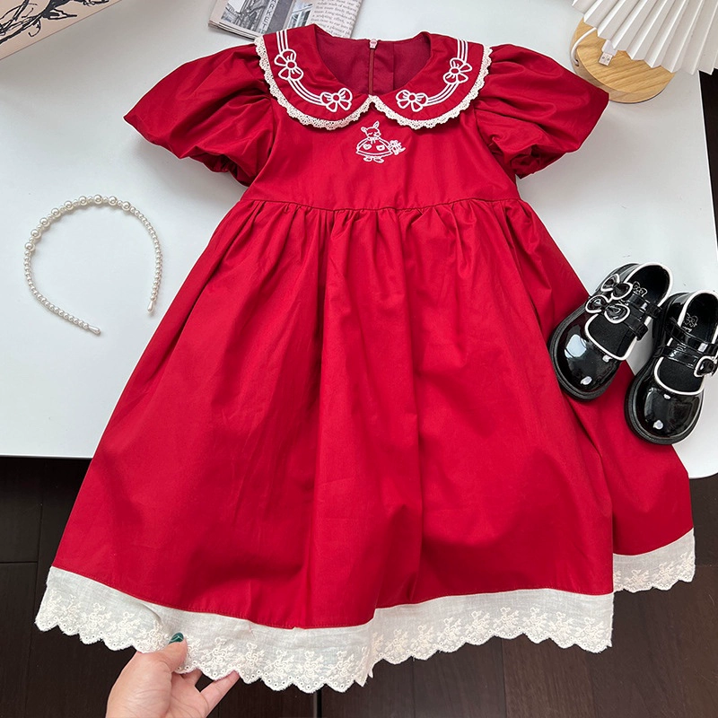 | nameOriginal | Girls Dress Summer Dress 2024 New Style Baby Red Palace Style Puff Sleeve Princess Dress Performance Dress |