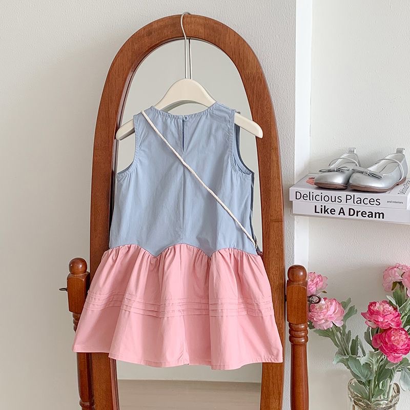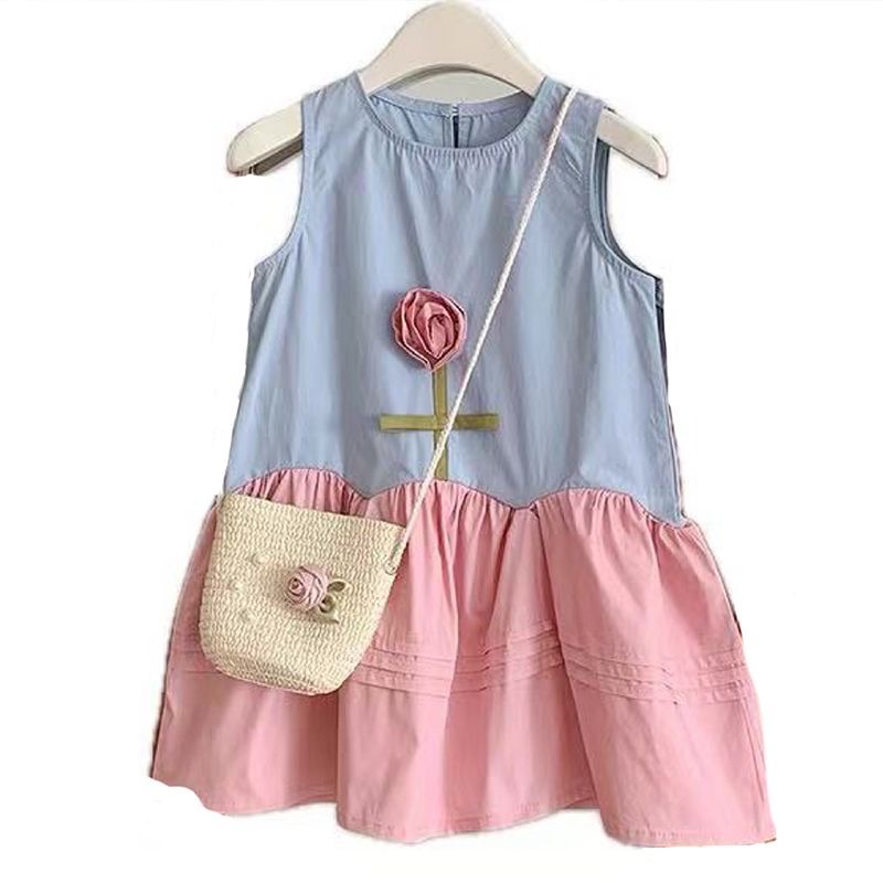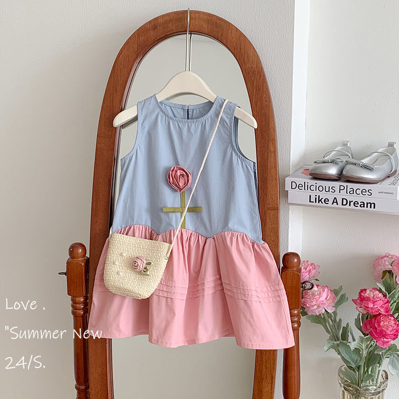 Girls dress Summer New 2024 Korean Style Baby Sweet Rose Vest Dress Fashion Princess Dress