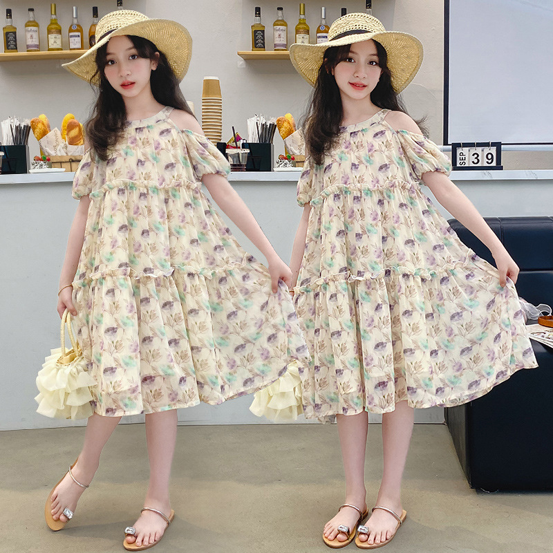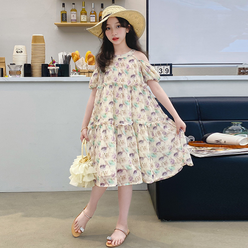 | nameOriginal | Girls dress Summer New Flower Shoulder-drop Princess Dress Big Kids Summer Stylized Korean Style Spliced Dress for Girls |