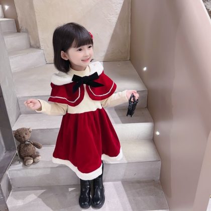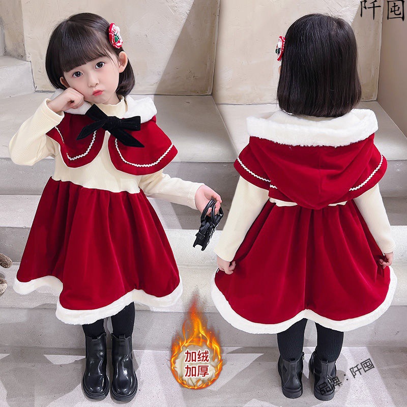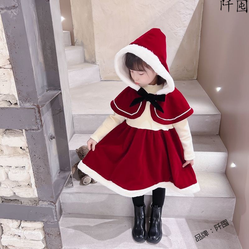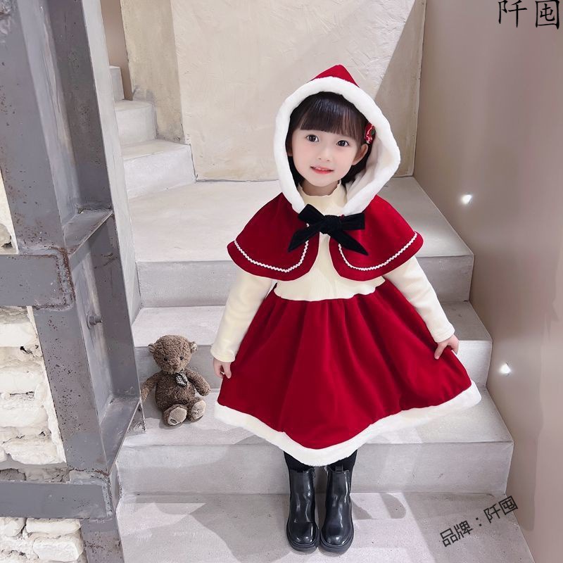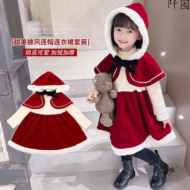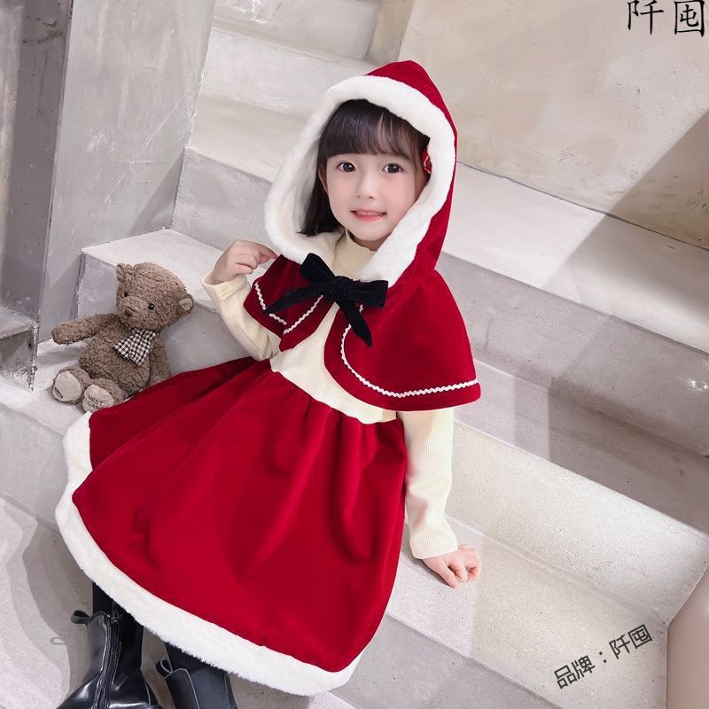 | nameOriginal | Girl's Dress Winter Sweet Shawl Fleece Hooded Festive Princess Dress Baby Girl's Cape Elegant Christmas Dress |