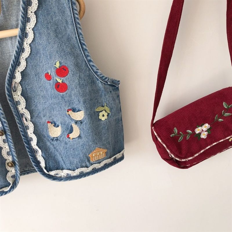 Girls’ Embroidered Denim Vest Spring and Summer 2024 Spring All-match Baby Denim Waistcoat Fashionable Vest Coat