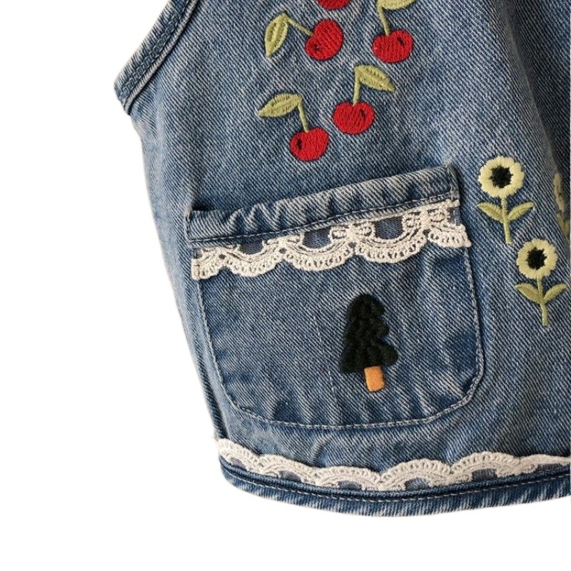 Girls' Embroidered Denim Vest Spring and Summer 2024 Spring All-match Baby Denim Waistcoat Fashionable Vest Coat