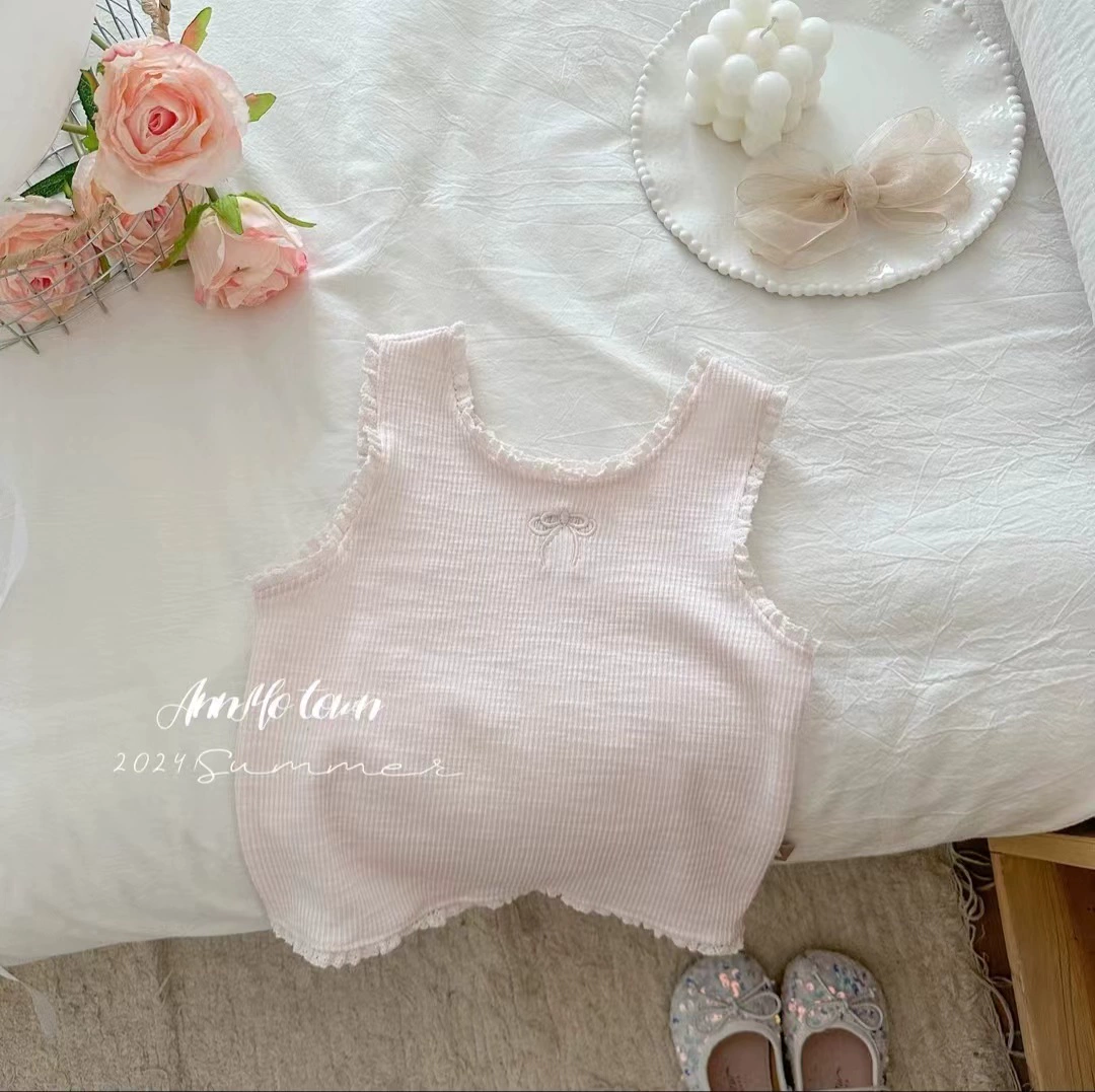 | nameOriginal | Girls' embroidered ear-trimmed vest, cute and fashionable for baby girls, easy to wear in summer, pure cotton, versatile inner suspenders |