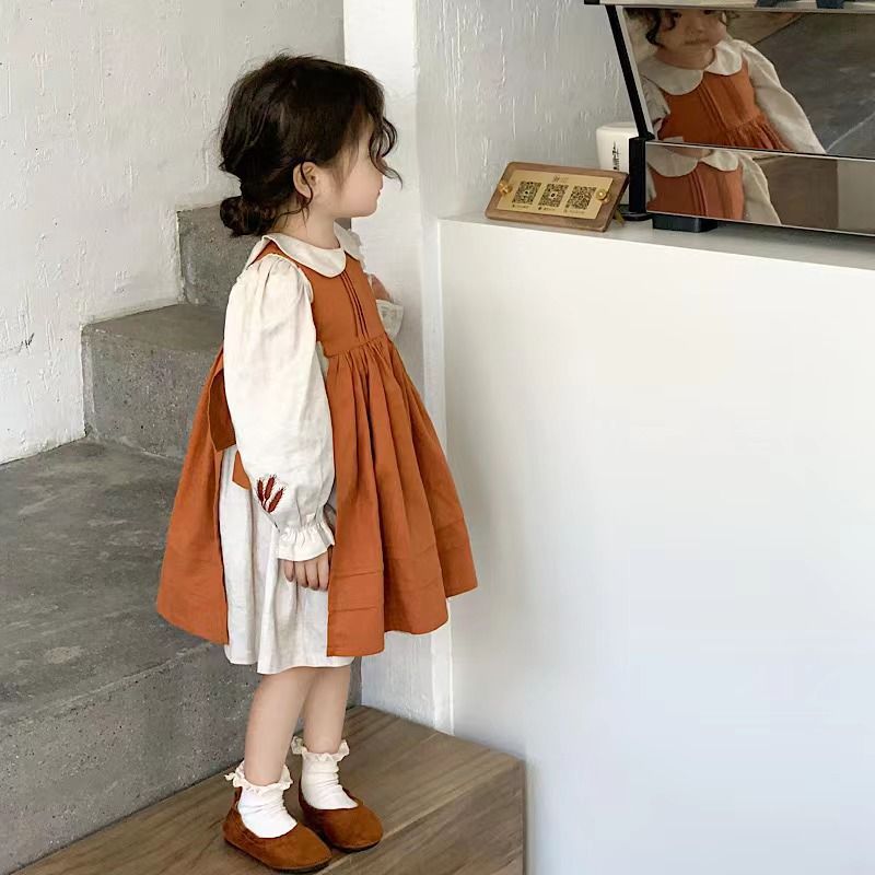 | nameOriginal | Girls' Embroidery dress Autumn suit 2024 New Long Sleeve Skirt Retro Style Strap Skirt Western Style Two-Piece Set |