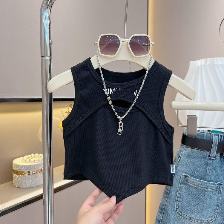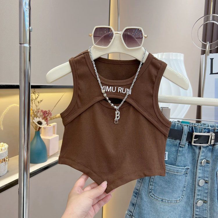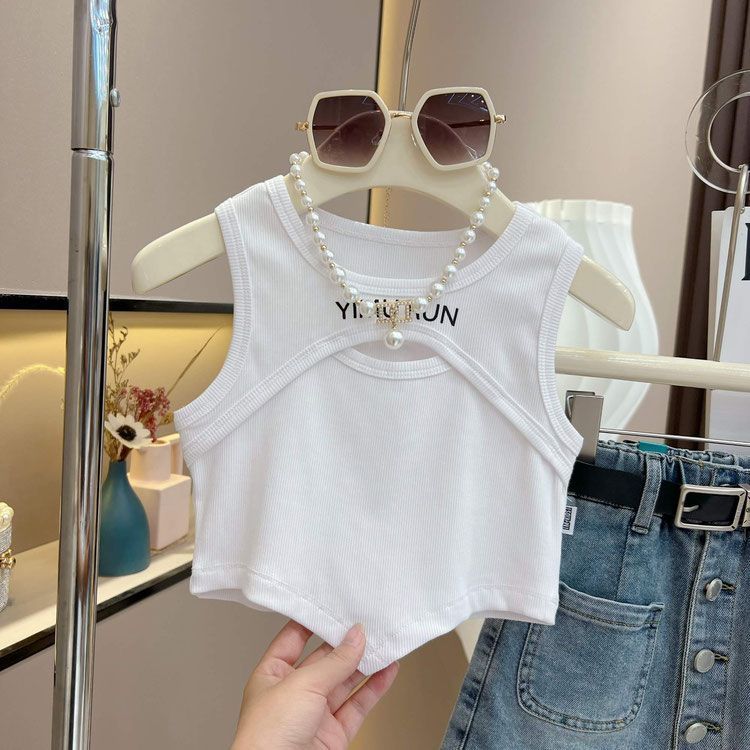 | nameOriginal | Girls' Fake Two-piece Hollow-out Camisole 2023 Summer All-match Irregular Outer Wear Short Slim-fit Top 0056 |