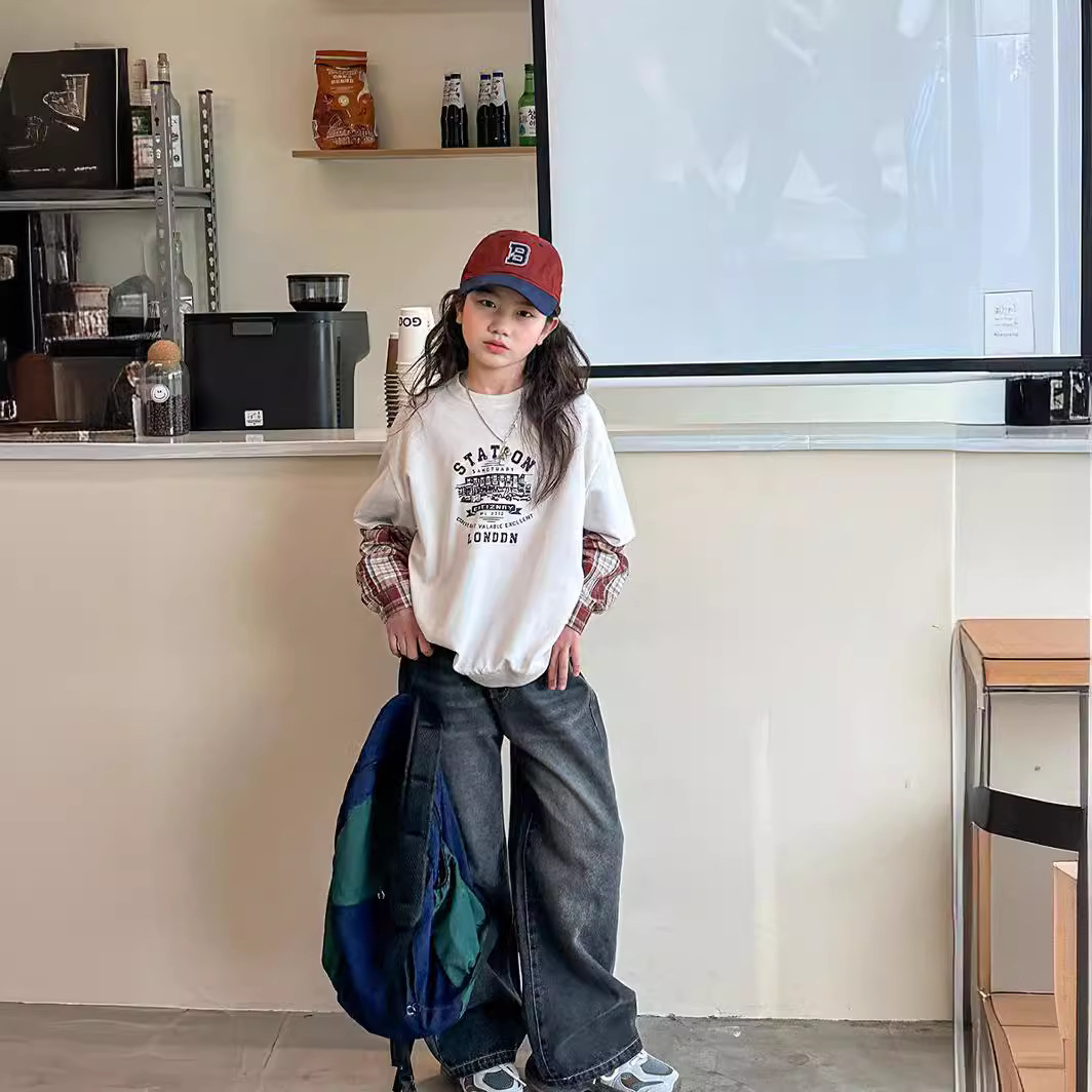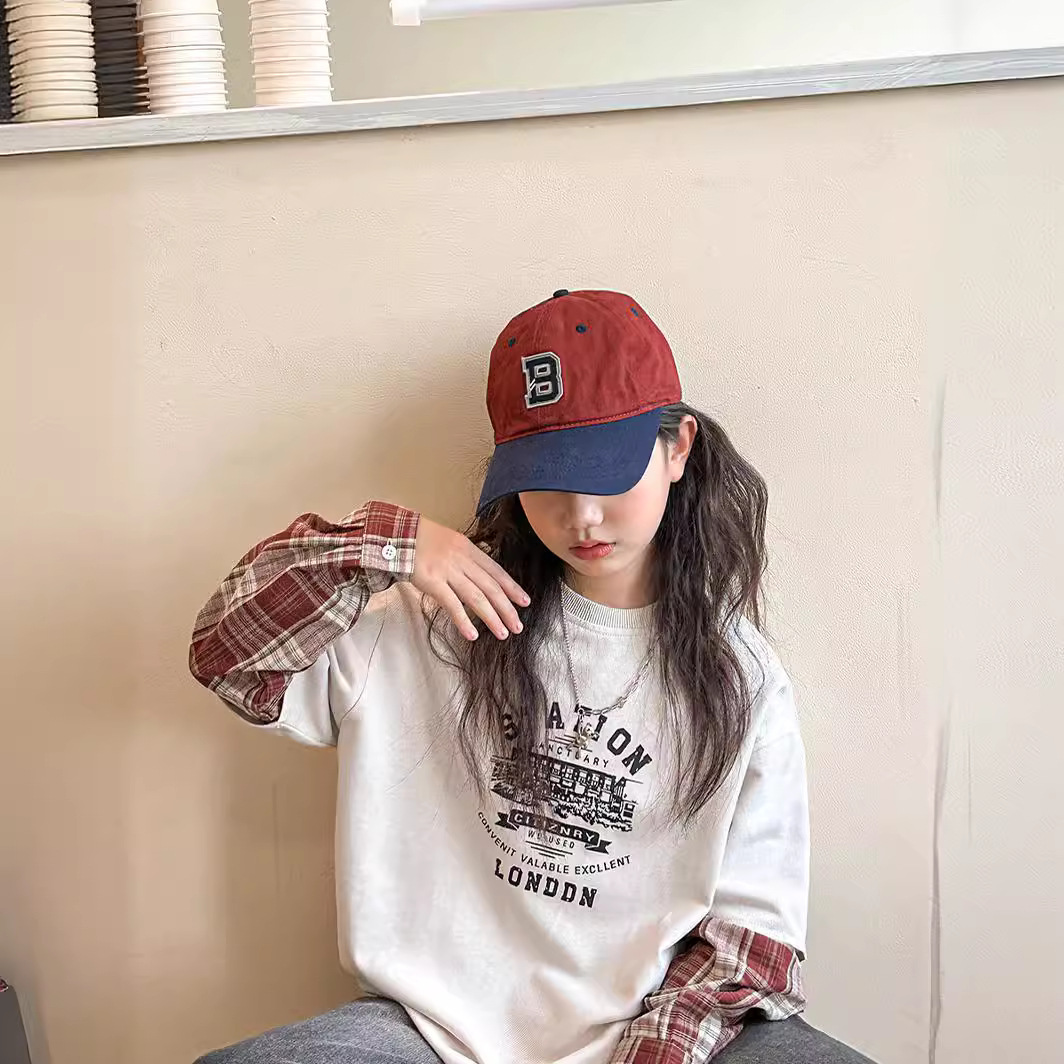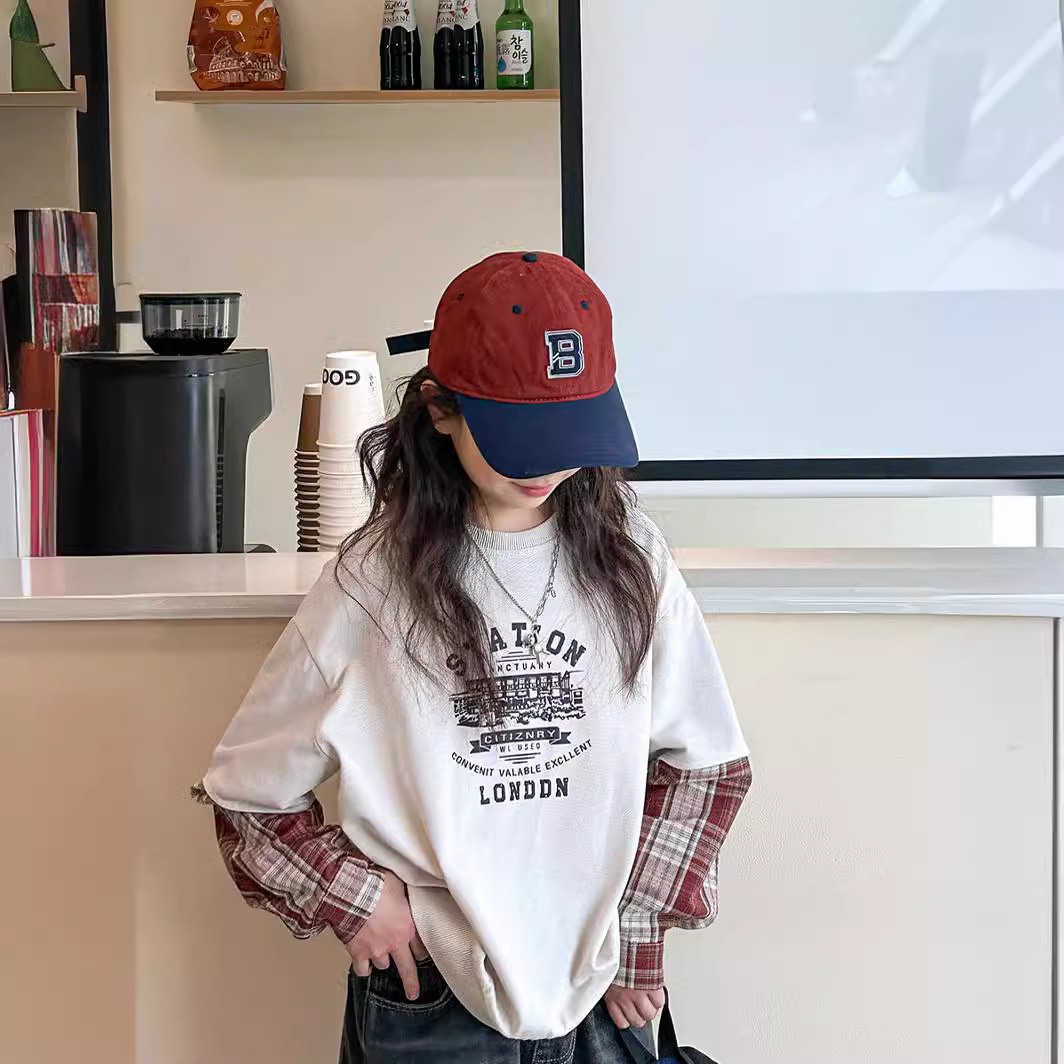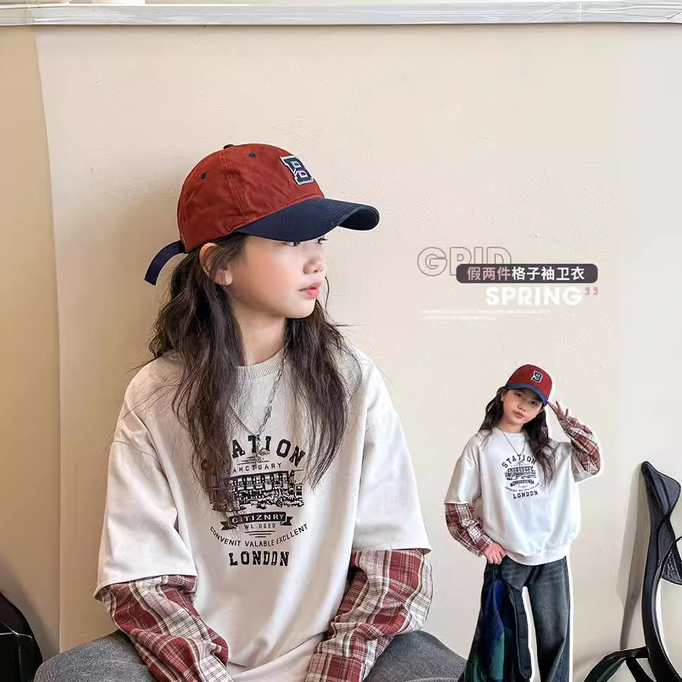 | nameOriginal | Girls' Fake Two-Piece Sweatshirt Spring 2024 New Style Stylisch Casual Plaid Stitching Versatile Top Trendy |