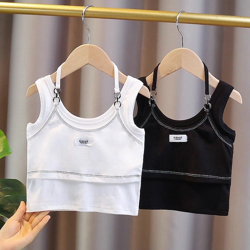 | nameOriginal | Girls' Fake Two-piece Vest Summer Outer Wear 2024 New Arrival Zhongda Children's Sports Thin Fashionable Sling Top |