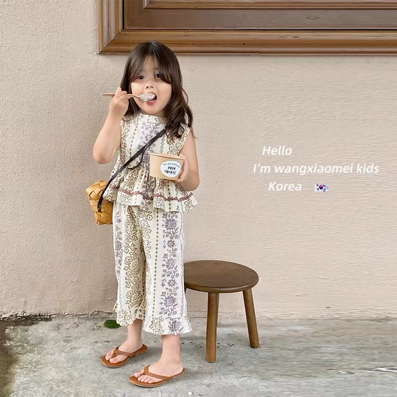 | nameOriginal | Girls Fashion Suit Western Style Summer Thin Vest 2024 New Beach Seaside Vacation Children's Long Pants Trendy |