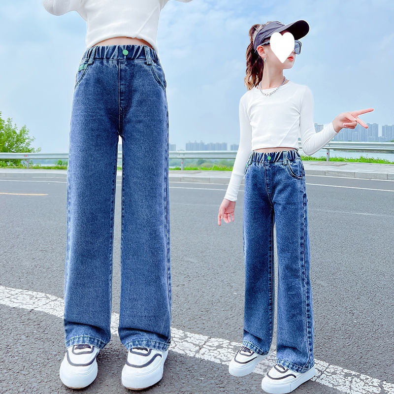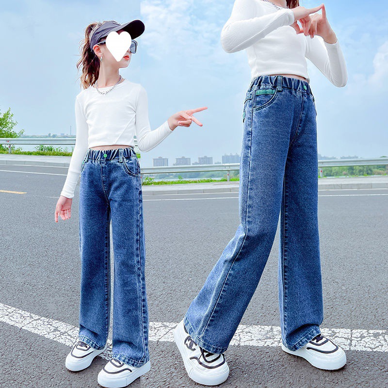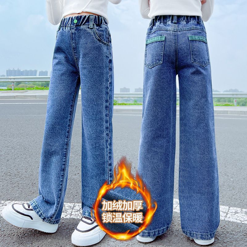 | nameOriginal | Girls' fleece-lined jeans middle and big children autumn and winter wear wide leg fashion Western style loose straight long 2023 new style |