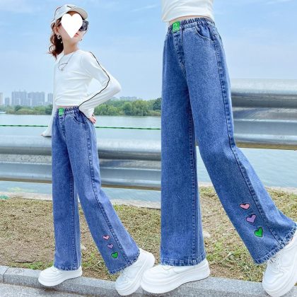 | nameOriginal | Girls' fleece-lined jeans middle and big children autumn and winter wear wide leg fashion Western style loose straight long 2023 new style |