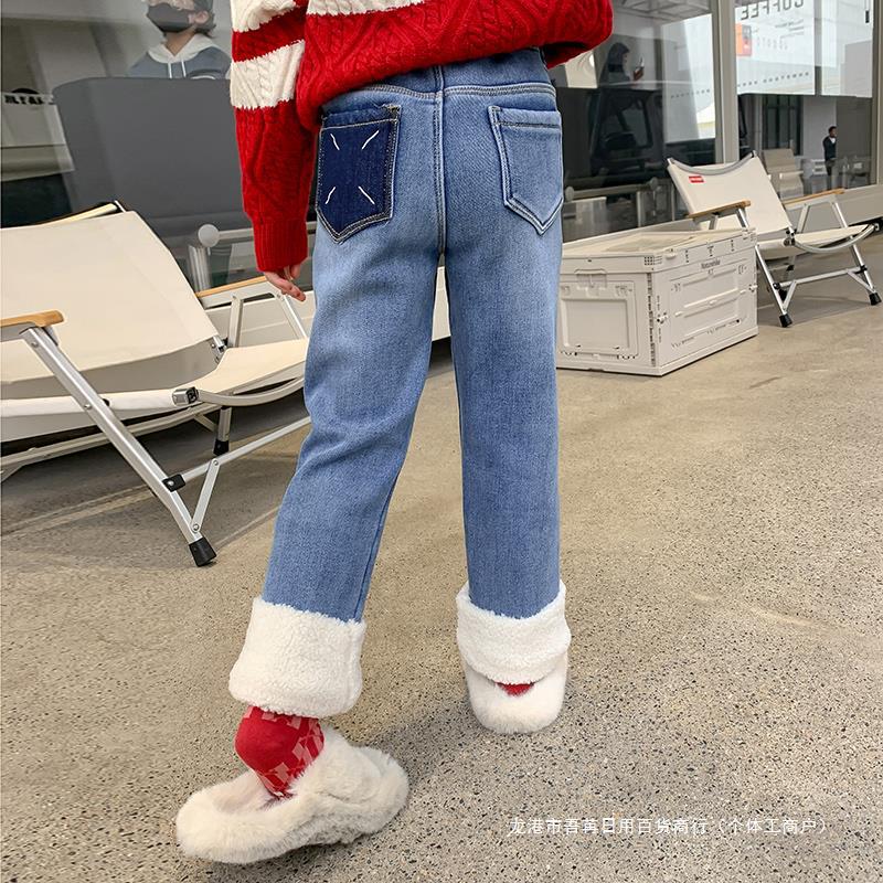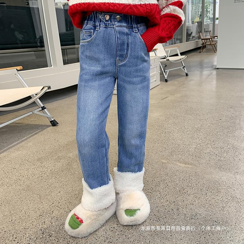 | nameOriginal | Girls' fleece-lined pants autumn and winter 2023 new western style children's jeans winter thickened little girl casual pants |