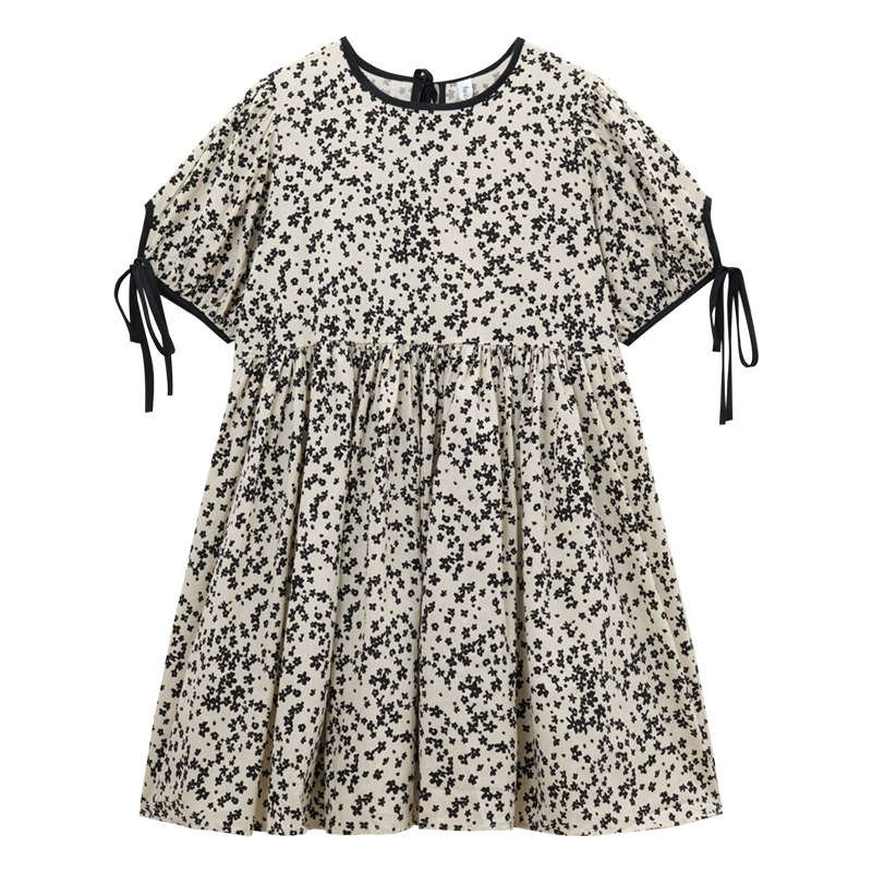 Girls Floral Puff Sleeve Dress Women Summer 2024 New Loose Slim Retro Small Fashion Short Skirt