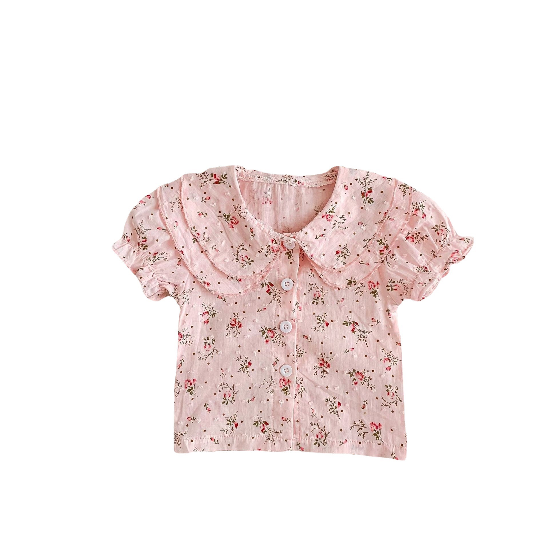| nameOriginal | Girl's Floral Shirt Shirt Baby's Solid Color Baby Doll Collar Summer Short-sleeved Shirt Western-style All-match Top |