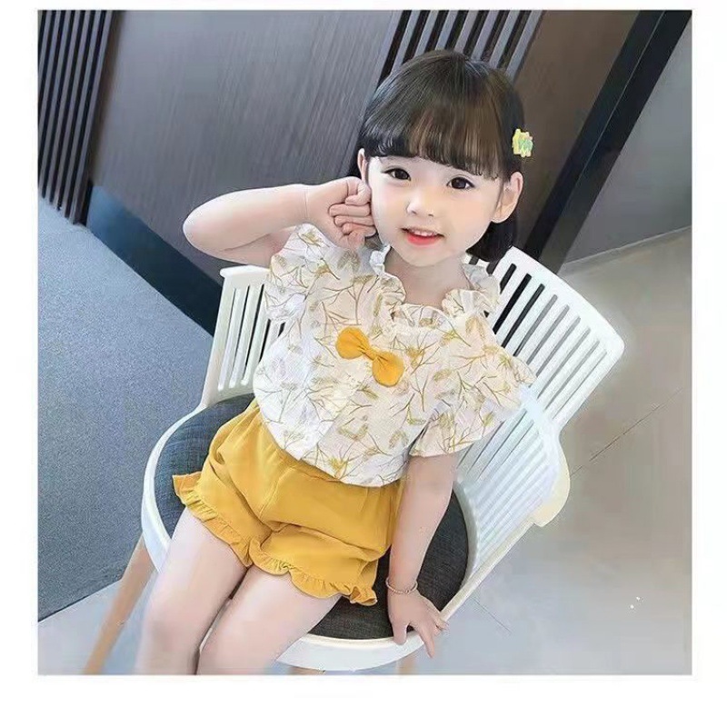 | nameOriginal | Girl's Floral suit 2023 New Summer Sweet Korean Style Children's Flying Sleeve Printed Shorts Two-piece Set Trendy |