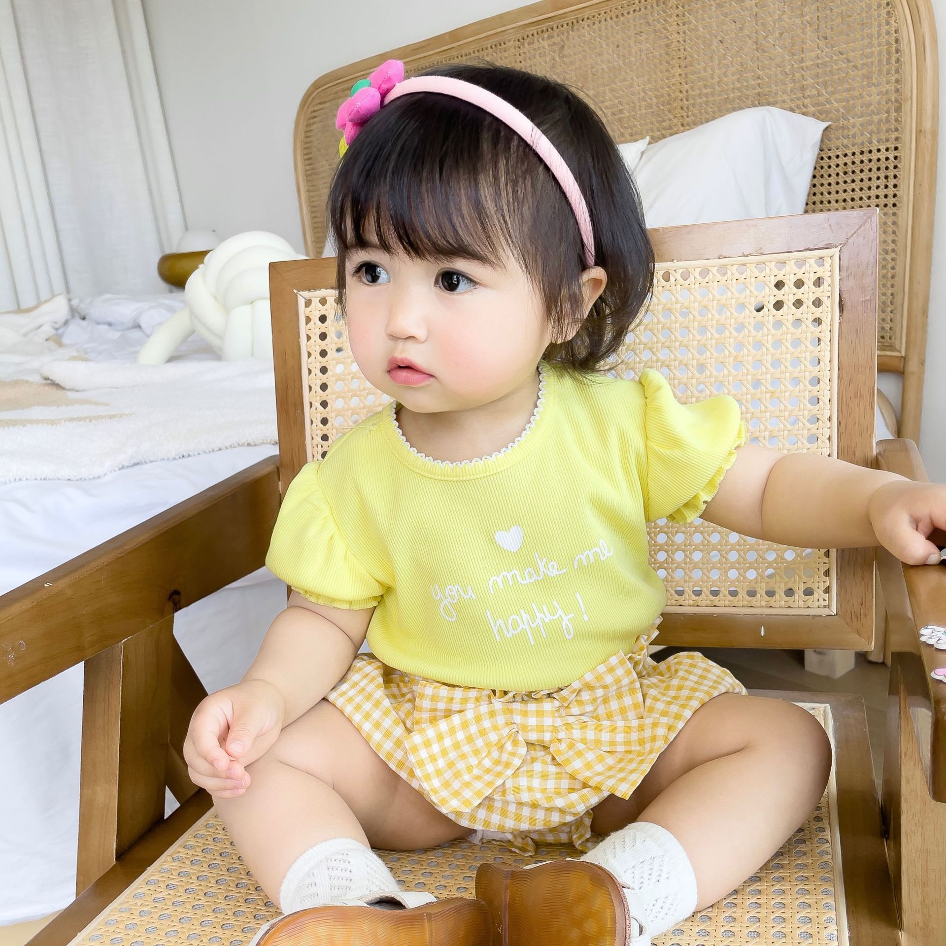 | nameOriginal | Girls' flower bud short-sleeved shirt summer 2023 new foreign-style wooden ear baby sweet women's baby coat wholesale |