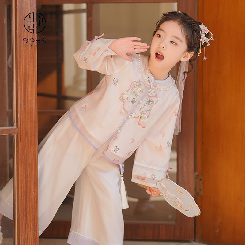 Girls’ Hanfu New Chinese Style suit Summer Spring and Autumn Ancient Style Super Immortal National Style Little Girl Spring Tang Suit 2024 New