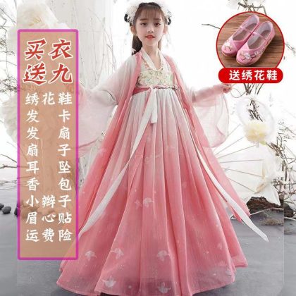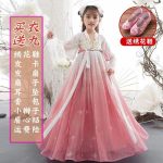 Girl’s Hanfu summer ancient style big sleeve shirt skirt Pink Super fairy dress children’s Tang suit little girl princess dress