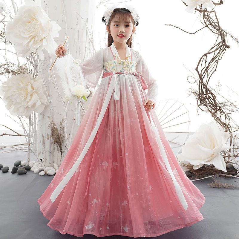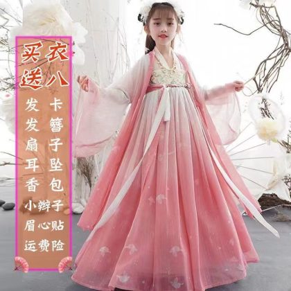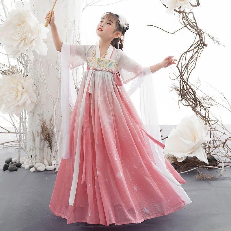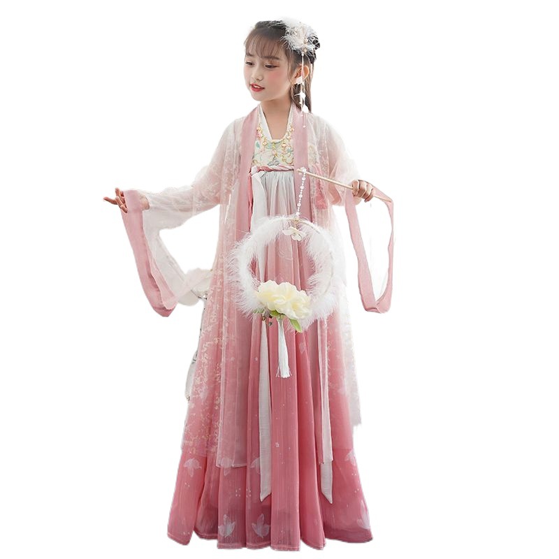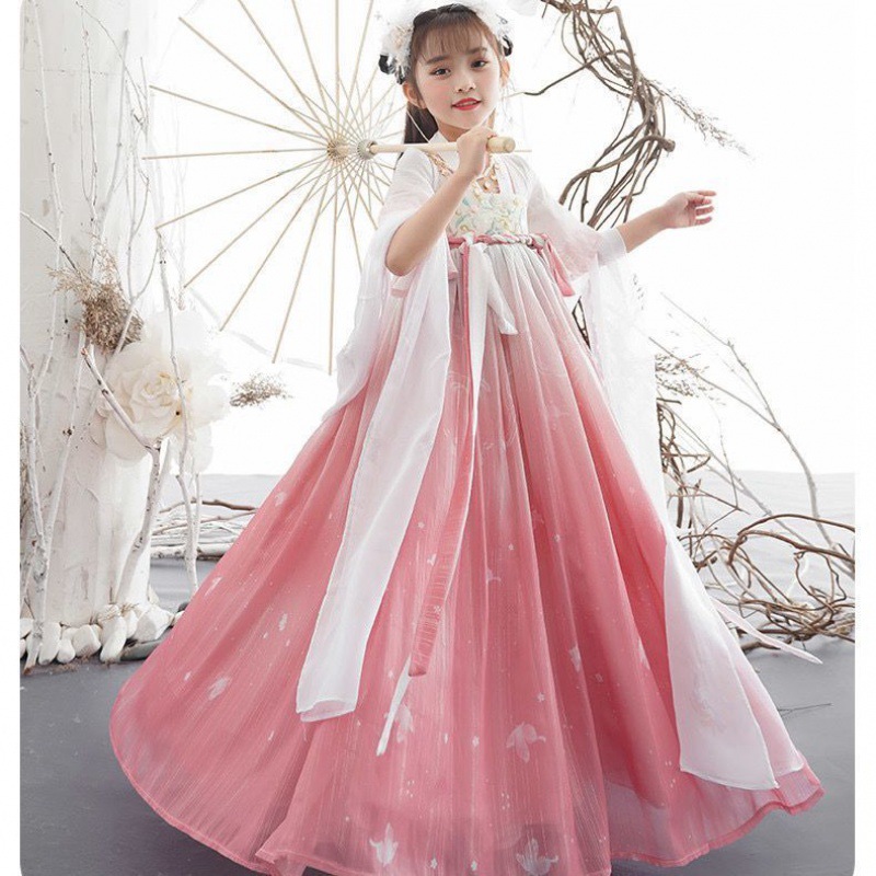Girl's Hanfu summer ancient style big sleeve shirt skirt Pink Super fairy dress children's Tang suit little girl princess dress