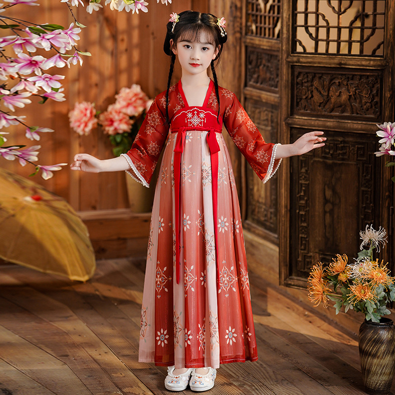 | nameOriginal | Girls' Hanfu summer children's ancient costume Super fairy 2022 new dress summer Tang suit ancient style skirt Princess pan |