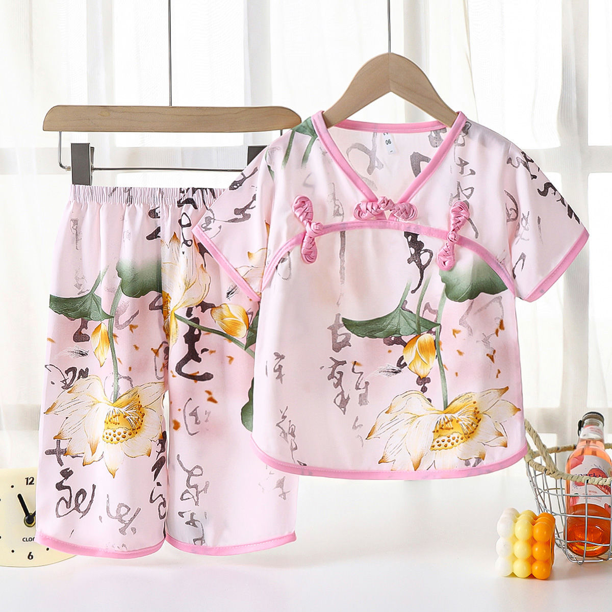 | nameOriginal | Girls' Hanfu Summer New Arrival Chinese Style suit Button Thin Cotton Short-Sleeved 7-Minted Pants Internet Celebrity Home Clothes Pajamas |